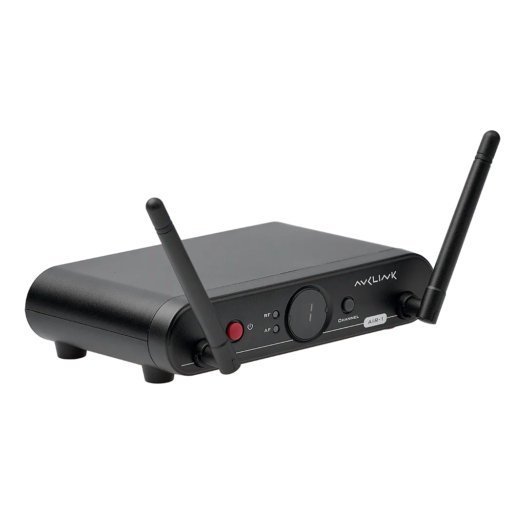 AVCLINK AIR-1 - одноканальная на 1 передатчик беспроводная микрофонная радиосистема  работает в UHF-диапазоне и поддерживает 8 выбираемых каналов. Технология Diversity. В систему, в зависимости от комплектации, входят: приёмник AIR-1, ручной передатчик AIR-H с динамическим капсюлем или поясной передатчик AIR-B, совместимый с головным (HM-11J) или петличным (LAV-6J) микрофоном. Система обеспечивает стабильную передачу аудиосигнала для профессиональных задач.