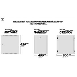 Рэковый шкаф, закрытый ТЕЛКОМ TL-12.6.4-M.9005, 12U, металлический