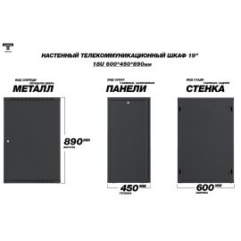 Рэковый шкаф, закрытый ТЕЛКОМ TL-18.6.4-M.9005, 18U, металлический