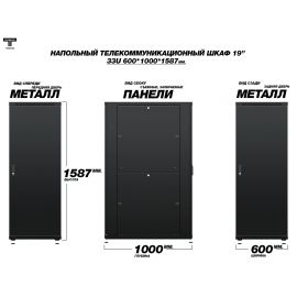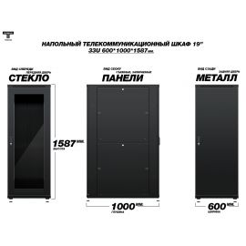 Рэковый шкаф, закрытый ТЕЛКОМ ТС-33.6.10-ММ, 33U, металлический, дв...