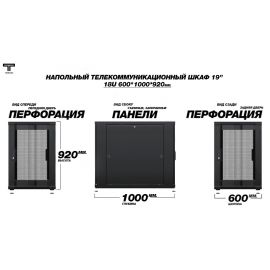 ТЕЛКОМ ТС-18.6.10-ПП.9005М шкаф напольный 18U 600x1000x920 телекомм...
