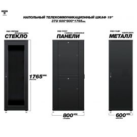 Рэковый шкаф, закрытый ТЕЛКОМ ТС-37.6.8-СМ, 37U, металлический, две...