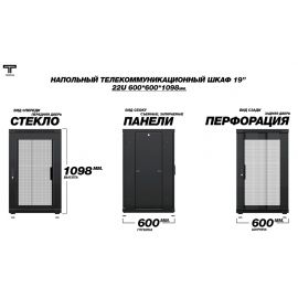 Рэковый шкаф, закрытый ТЕЛКОМ ТС-22.6.6-СП, 22U, металлический, две...