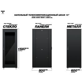Рэковый шкаф, закрытый ТЕЛКОМ ТС-33.6.8-СМ, 33U, металлический, две...