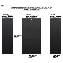 Рэковый шкаф, закрытый ТЕЛКОМ ТС-42.6.10-ММ, 42U, металлический, дв...