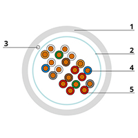 Многопарный кабель категории 5 симметричной парной скрутки предназначен для передачи сигналов с частотой до 100 МГц.
