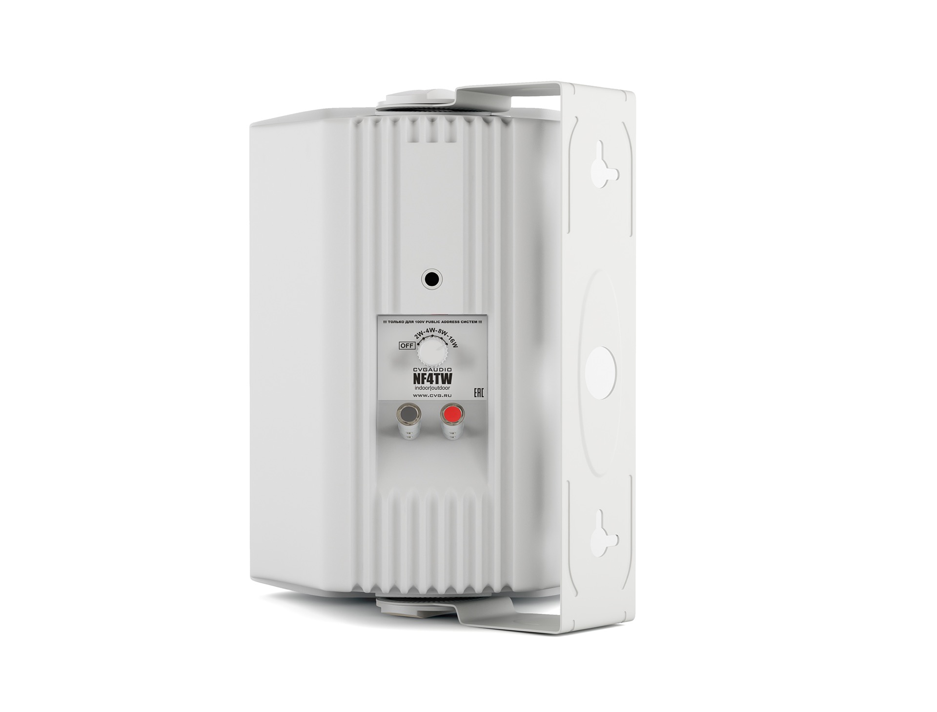 Настенные двухполосные корпусные акустические системы NF4TW – качеcтвенное, но при этом очень экономичное решение для организации системы трансляции фоновой музыки и подачи речевых сообщений в торговых залах, бутиках, кафе, ресторанах и прочих общественных помещениях. При стоимости сравнимой с простыми широкополосными моделями, CVGaudio NF4TW двухполосная, и как следствие звучит значительно более открыто и ярко. Модель имеет миниатюрный размер, классическую аккуратную прямоугольную форму и незаметно, не нарушив общего стиля впишется в любой интерьер. В комплект поставки входит удобное металлическое крепление в виде скобы, позволяющее легко установить динамик на стену или потолок и поворачивать его в одной плоскости. Возможна как вертикальная, так и горизонтальная установка. Также предусмотрены крепежные места для установки опционального шарнирного настенного крепления CVGaudio WSM-02W, который позволяет поворачивать NF4TW в любой плоскости. Корпус акустической системы NF4TW изготовлен из высококачественного белого ABS пластика стойкого к воздействию влаги, солнечного света, пыли и т.д. Лицевая панель закрывается покрашенной в цвет корпуса металлической сеткой. Корпус герметичный и имеет степень защиты от проникновения влаги и пыли - IP44, соотвественно CVGaudio NF4TW может использоваться как в помещениях, так и на улице, но при условии установки под козырьком защищающим от прямого попадания дождя/снега.