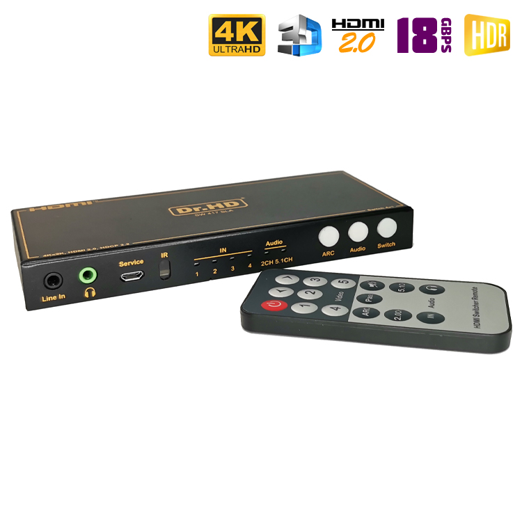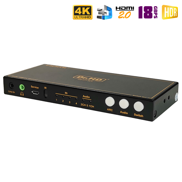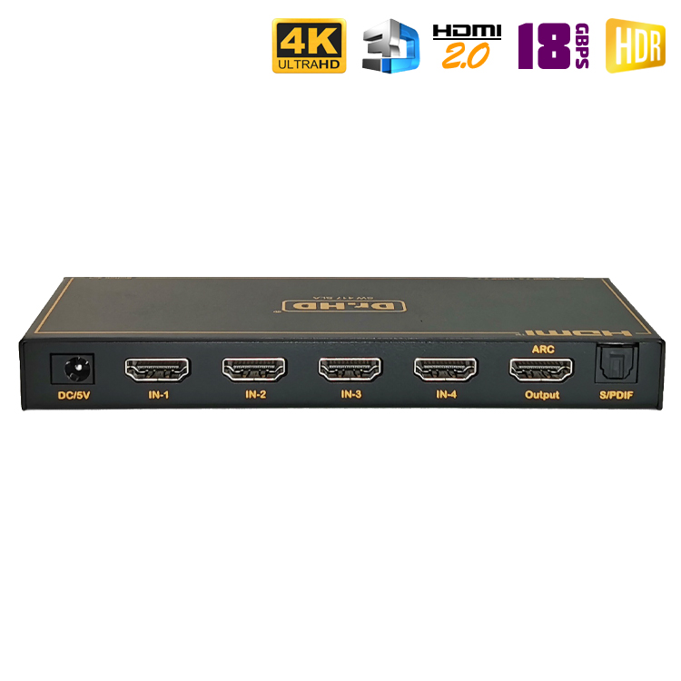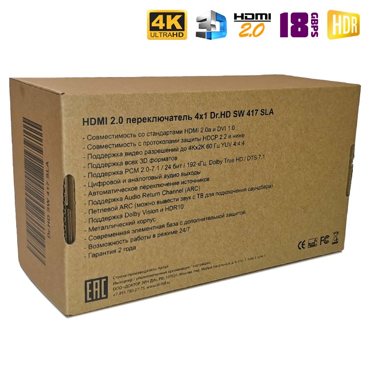 Dr.HD SW 417 SLA - свитч – шикарное решение для тех, кому необходимо объединить на одном экране сигналы с 4х HD источников. Устройство поддерживает все спецификации HDMI 2.0: 4K при частоте 60 Гц, YUV 4:4:4, 3D, 18Gbps, HDR10, HDCP 2.2, CEC, петлевой ARC, Dolby Vision и прочее. Если вам нужен классный HDMI свитч, который не устареет еще лет 5 (а то и больше) – то Dr.HD SW 417 SLA отличное решение.