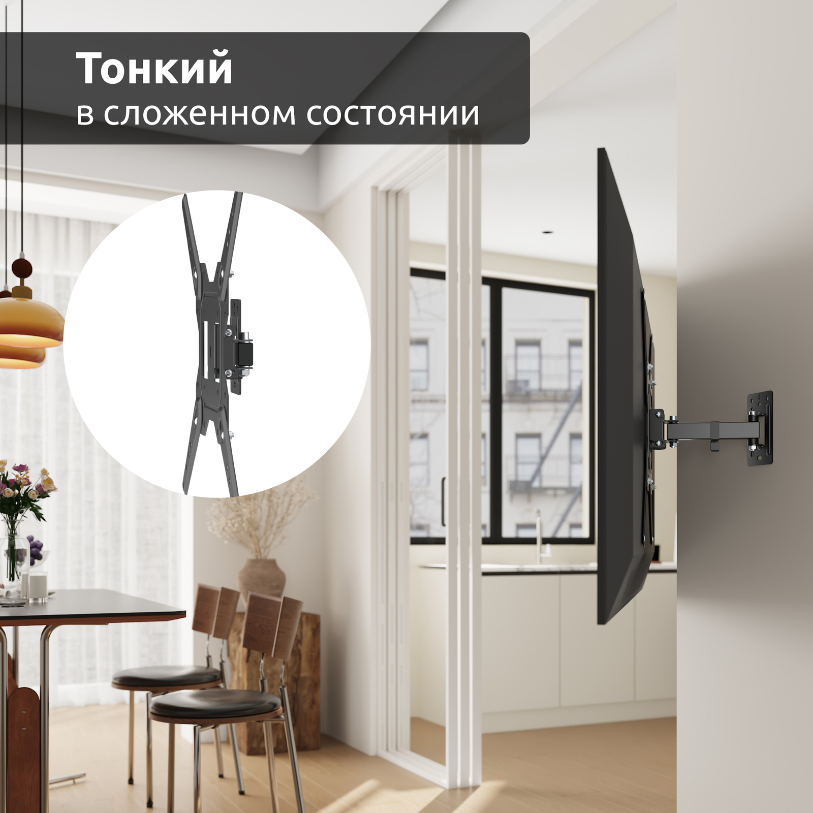 Даже учитывая широкие возможности регулировки, кронштейн компактен в сложенном состоянии.