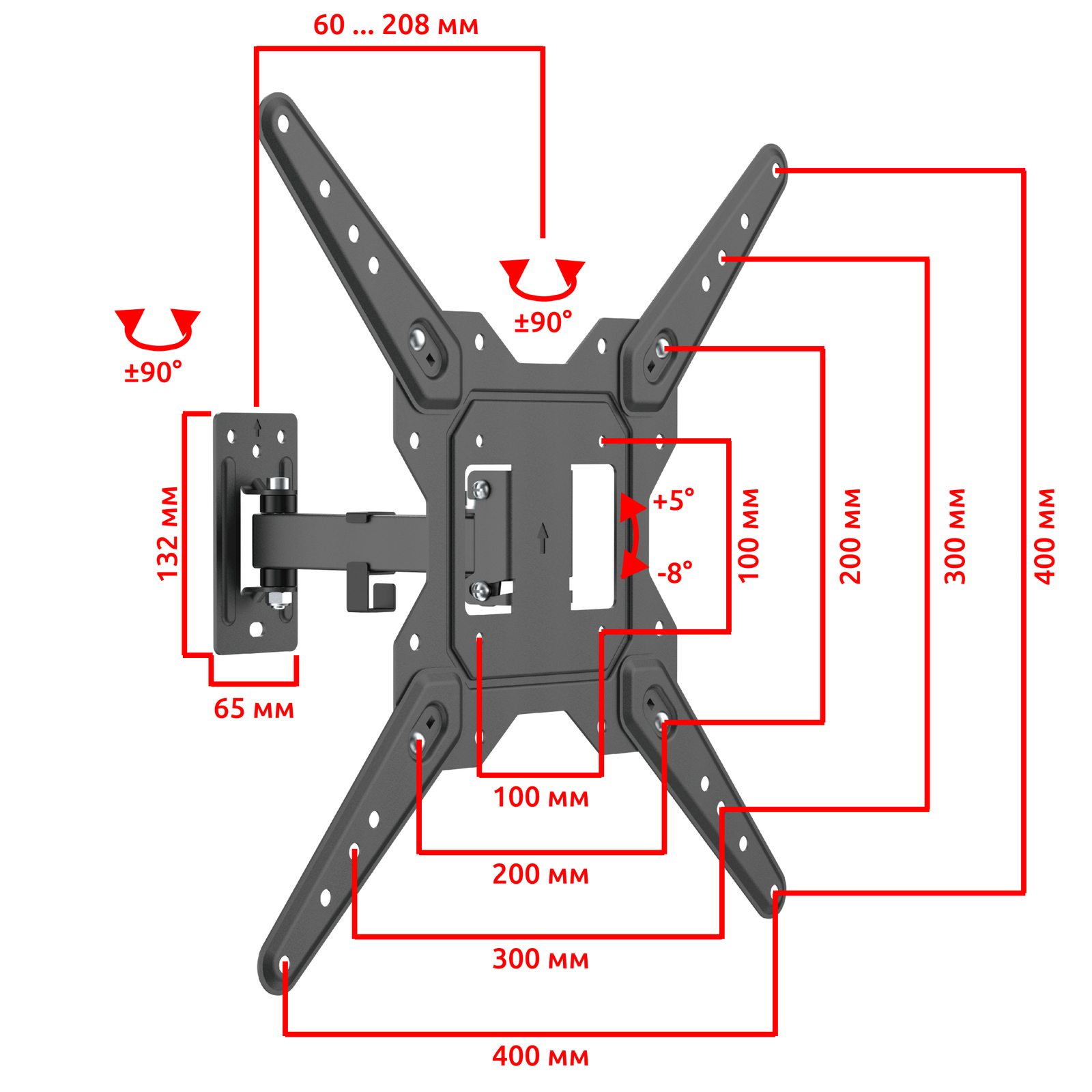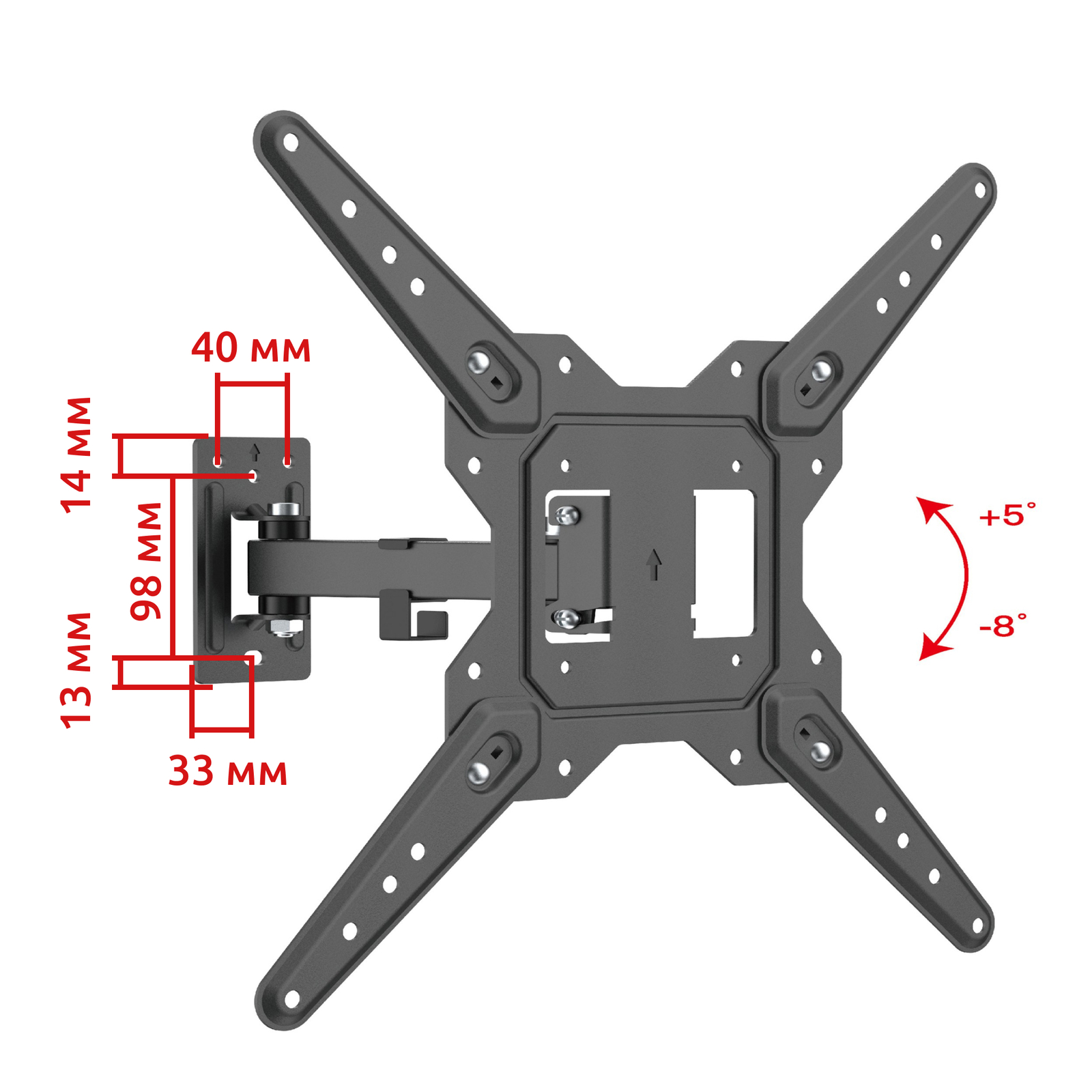 - Тип кронштейна: Настенный наклонно поворотный
