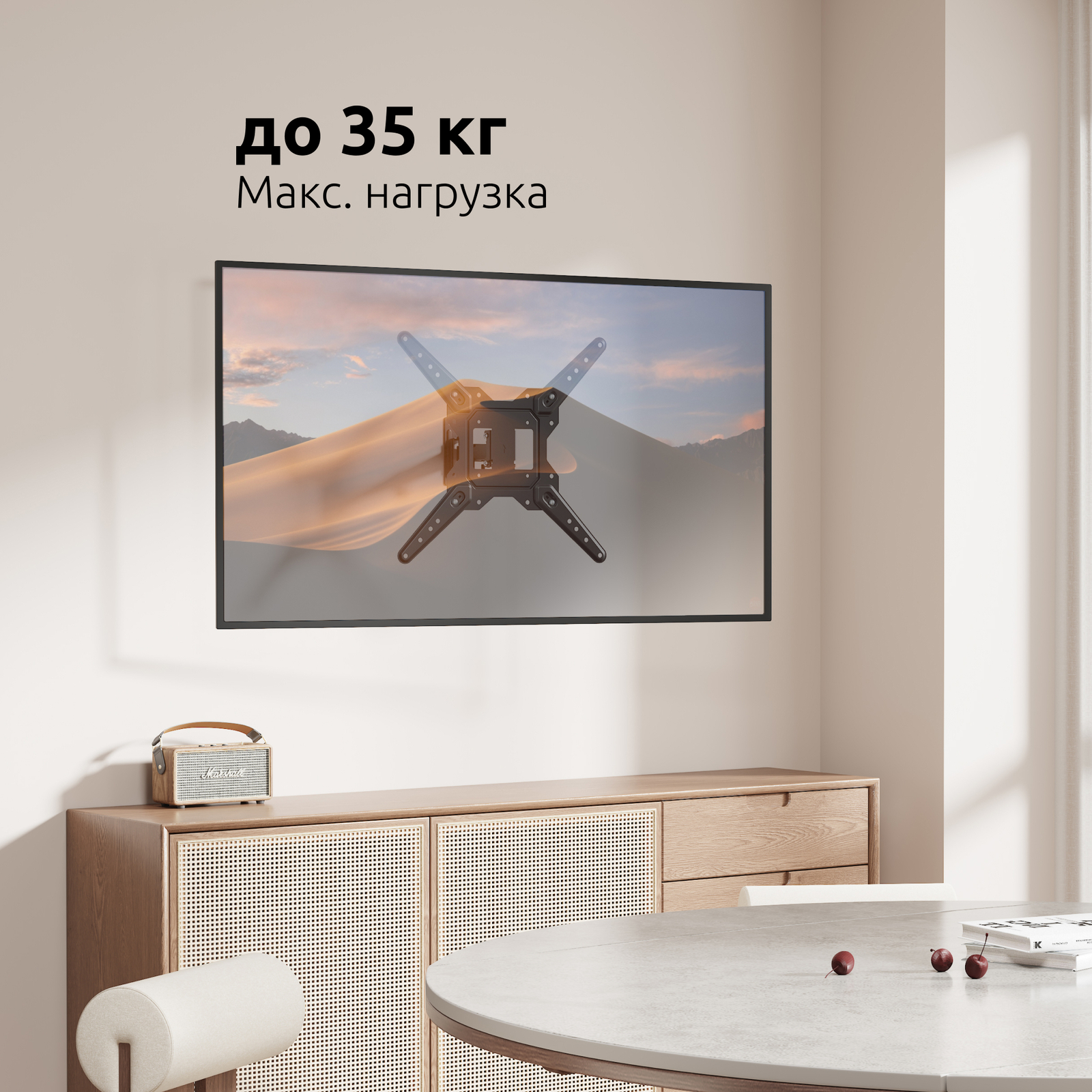 Он подходит для маленьких и средних телевизоров весом до 35 кг.