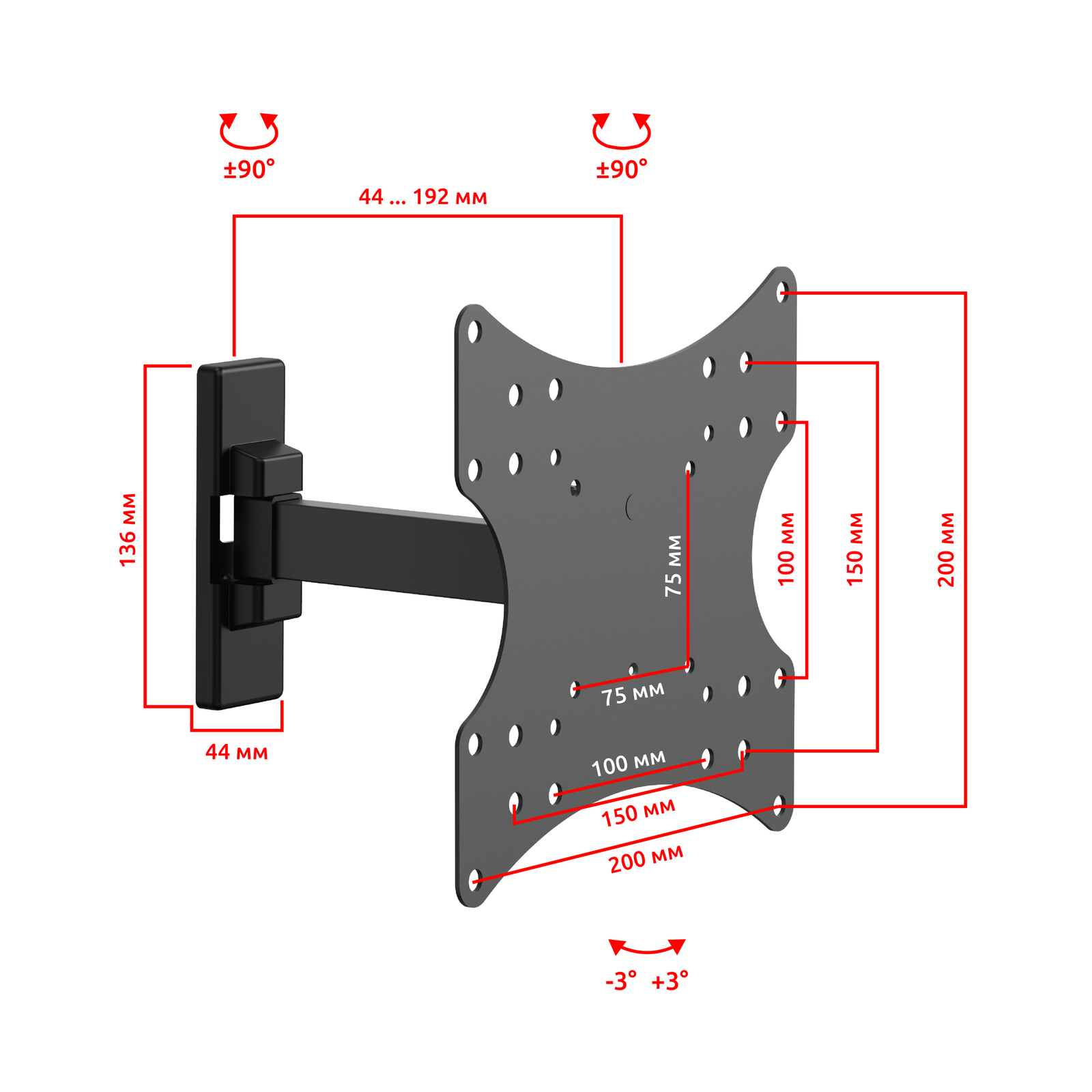 - Тип кронштейна: Настенный наклонно поворотный для телевизора или монитора