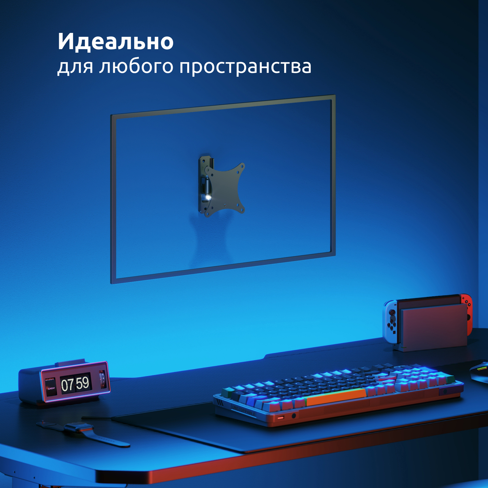 Крепление универсально за счет множества предусмотренных производителем размеров VESA от 75x75 мм до 100x100 мм.