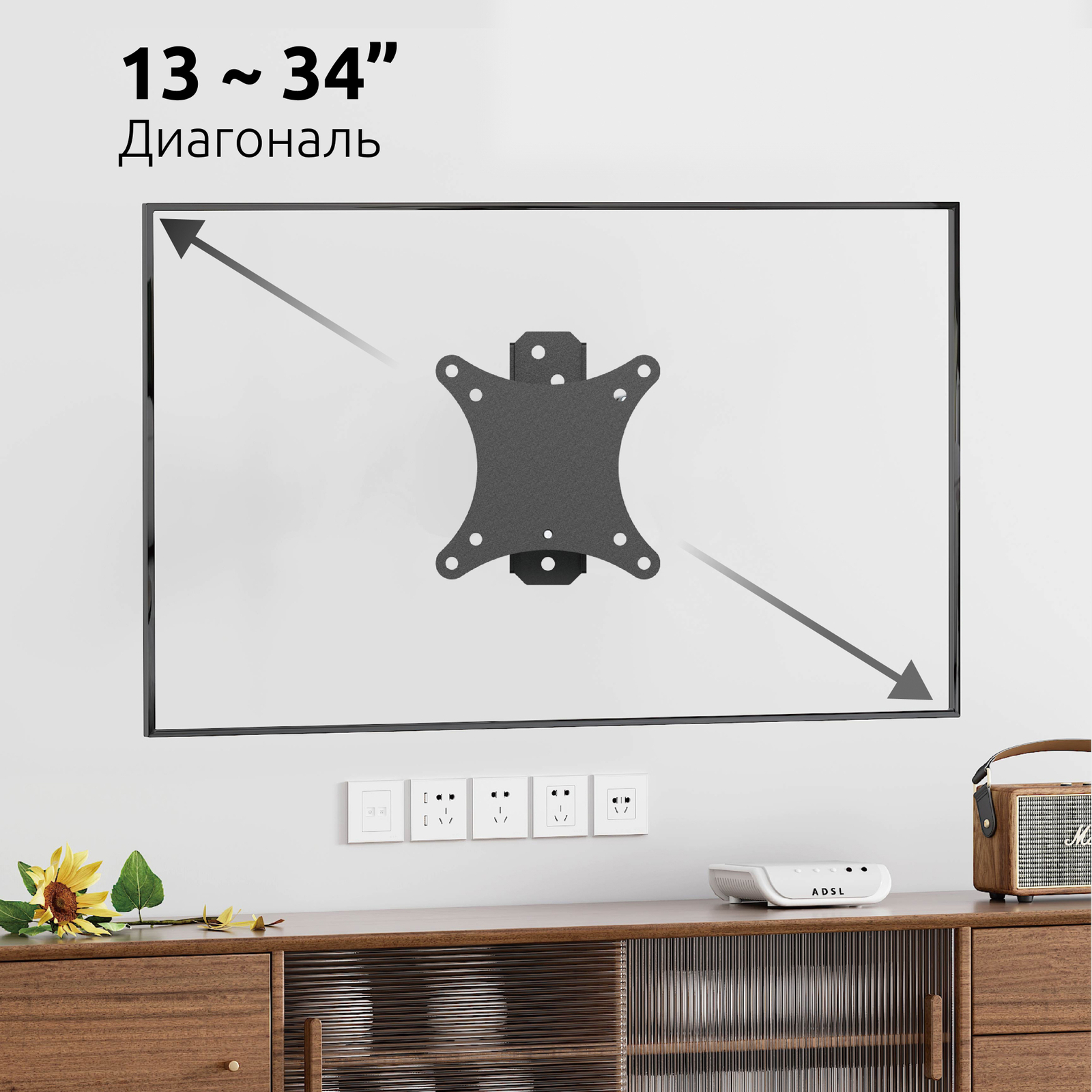 Настенный наклонно поворотный кронштейн серии UNITEKI FM1615B предназначен для телевизоров и мониторов с диагональю от 13 до 34 дюймов (см. : 33 ~ 86,36).