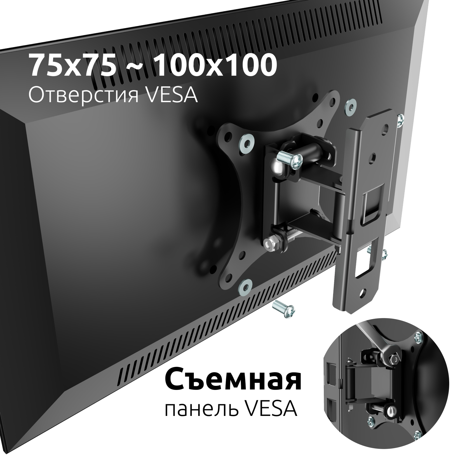 - Тип кронштейна: Наклонно поворотный для телевизора или монитора