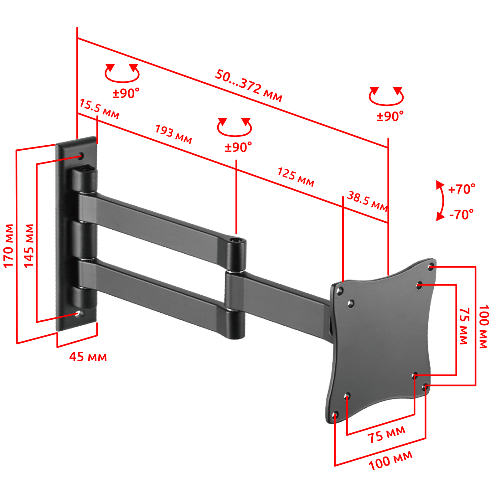 - Тип кронштейна: Настенный наклонно поворотный