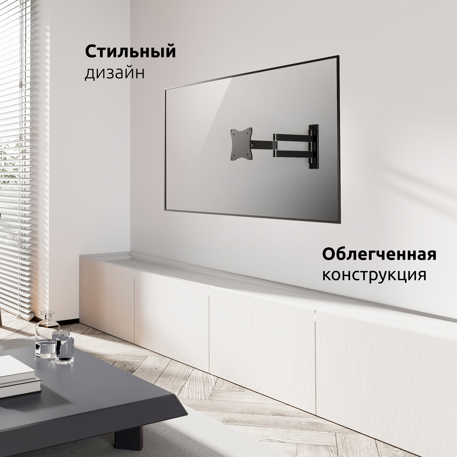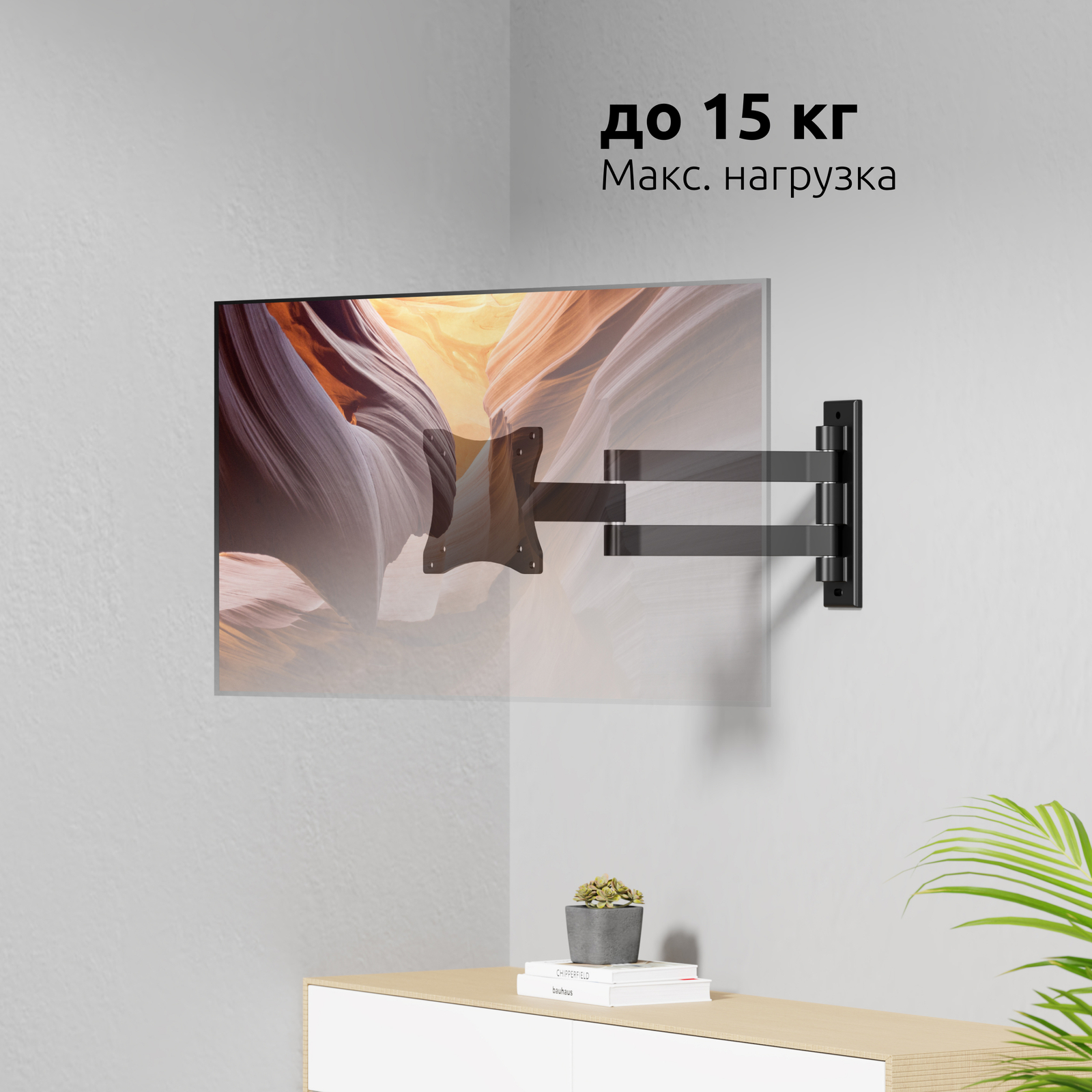 Он идеально подходит для телевизоров и мониторов с небольшим весом − кронштейн выдерживает до 15 кг.