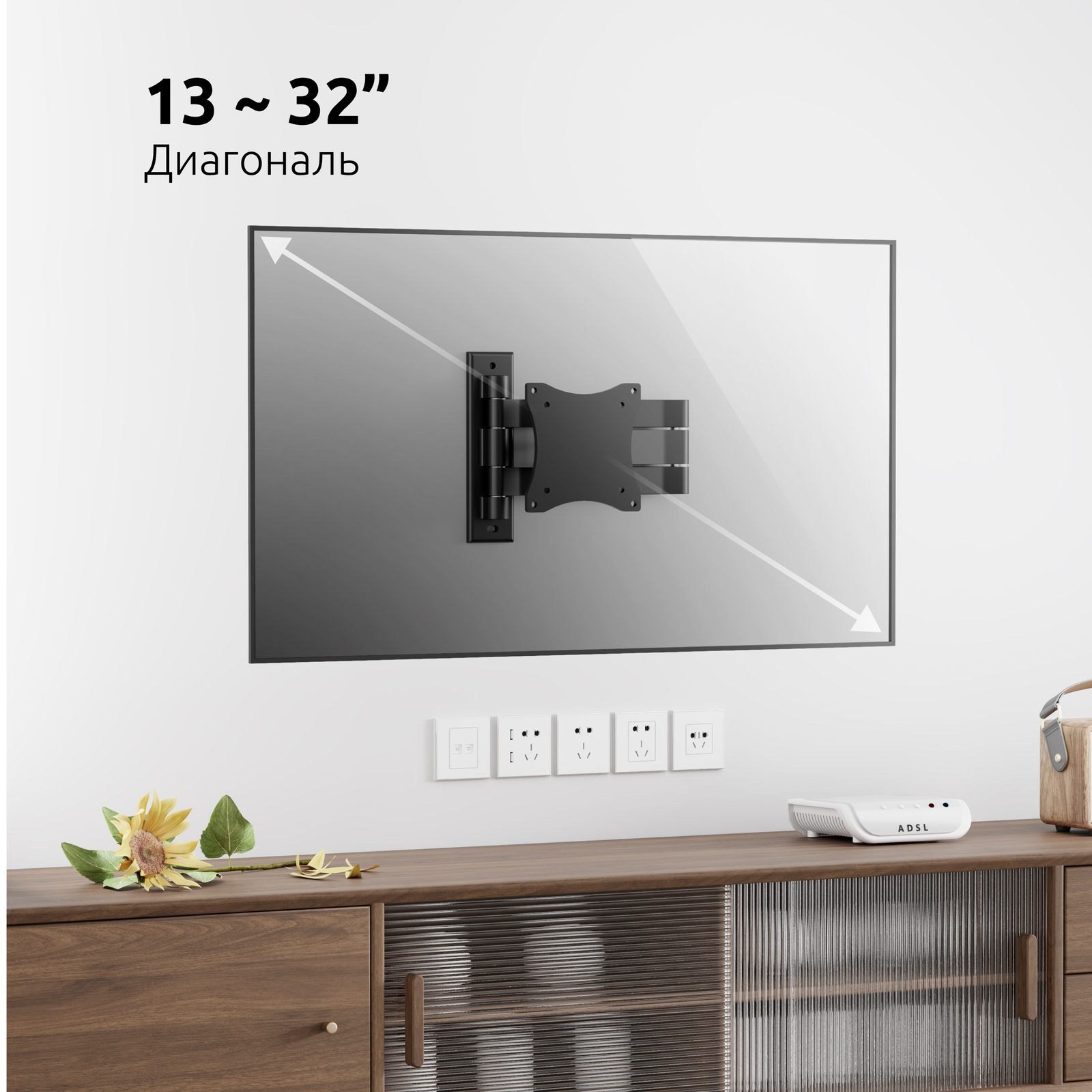- Тип кронштейна: Настенный наклонно поворотный