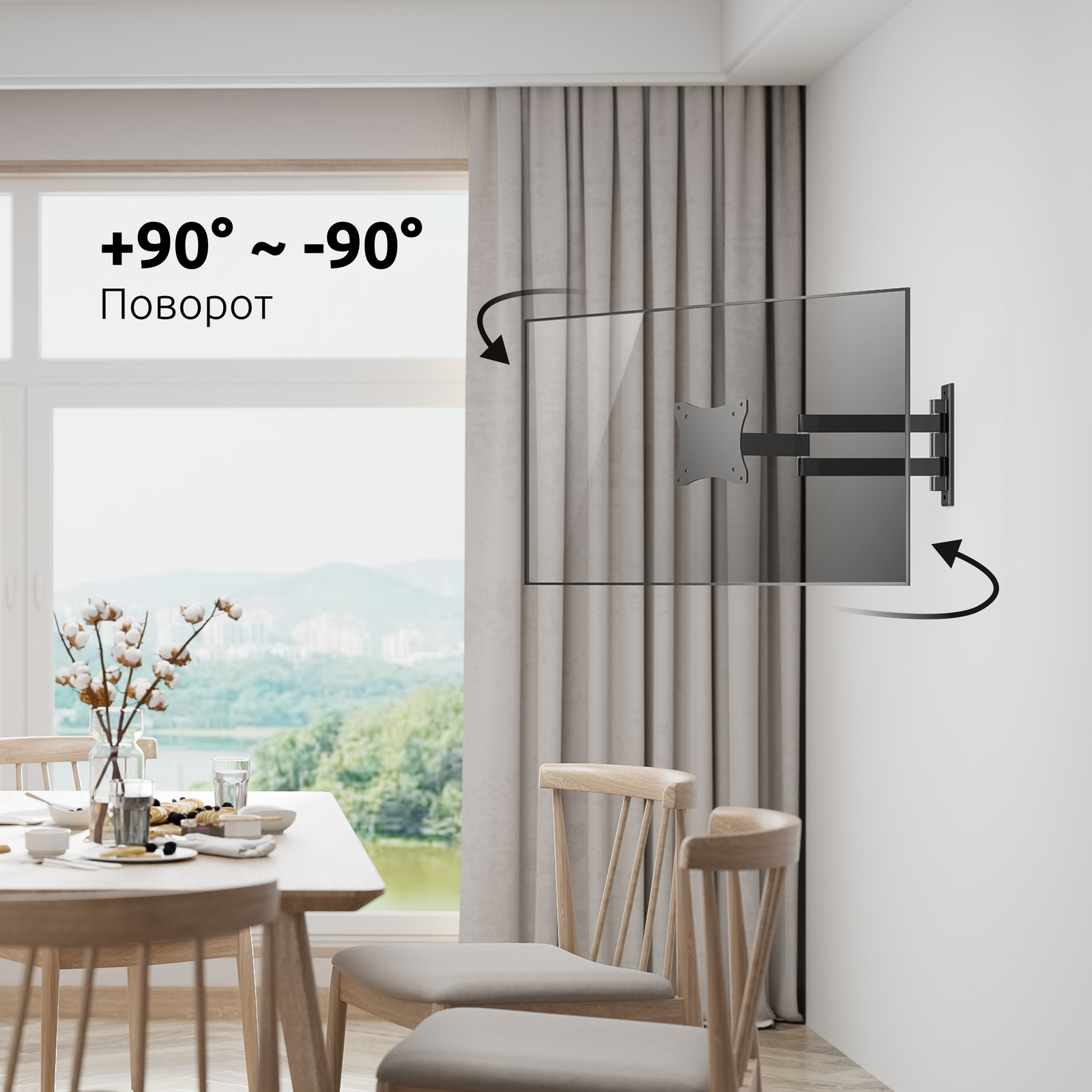Для поворота телевизора Вам не нужно использовать дополнительных приспособлений или прилагать усилия. Вы сможете повернуть панель и изменить расстояние от стены лёгким движением руки.