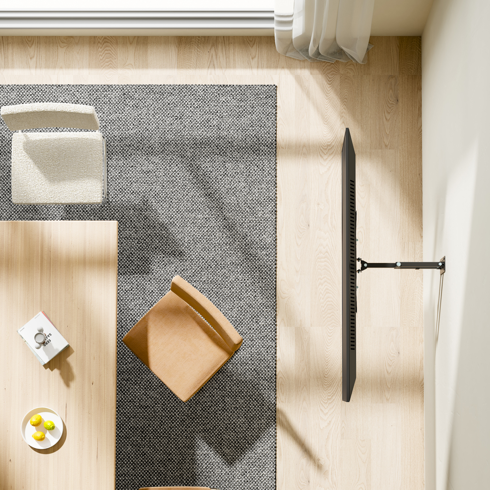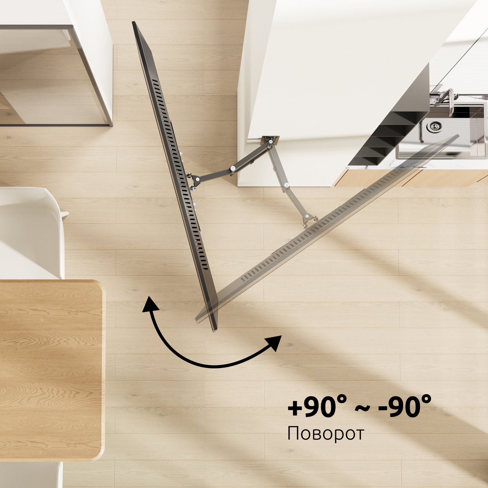 Вы сможете повернуть панель и изменить расстояние от стены лёгким движением руки.