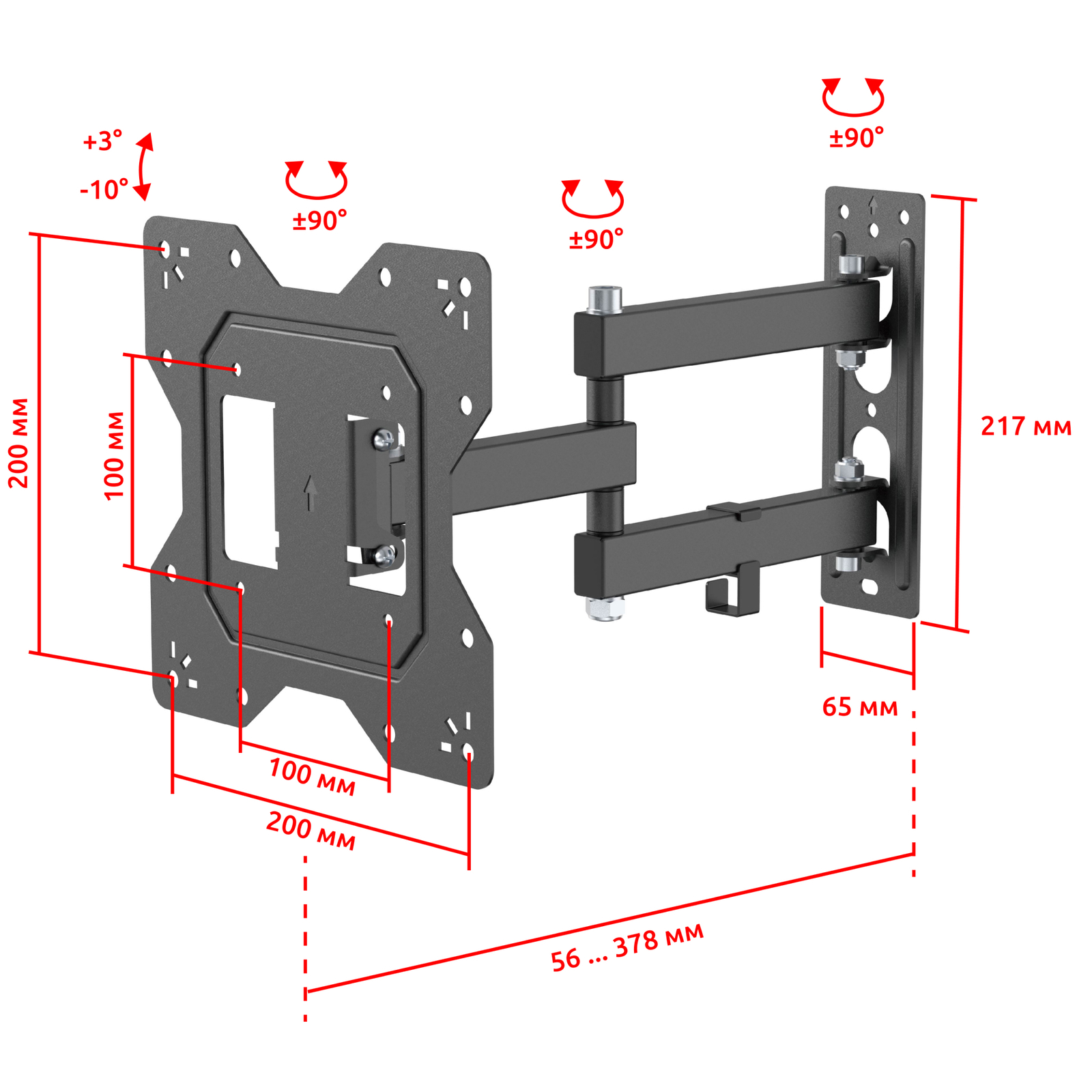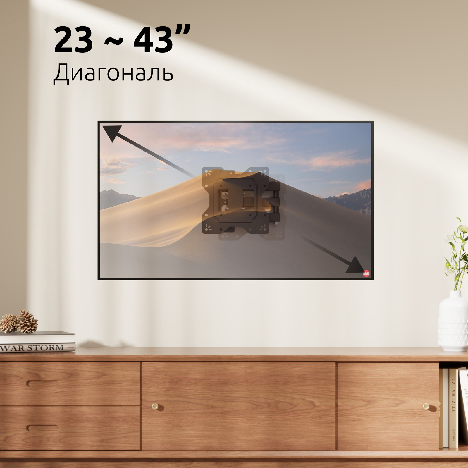 - Тип кронштейна: Настенный наклонно поворотный для телевизора или монитора