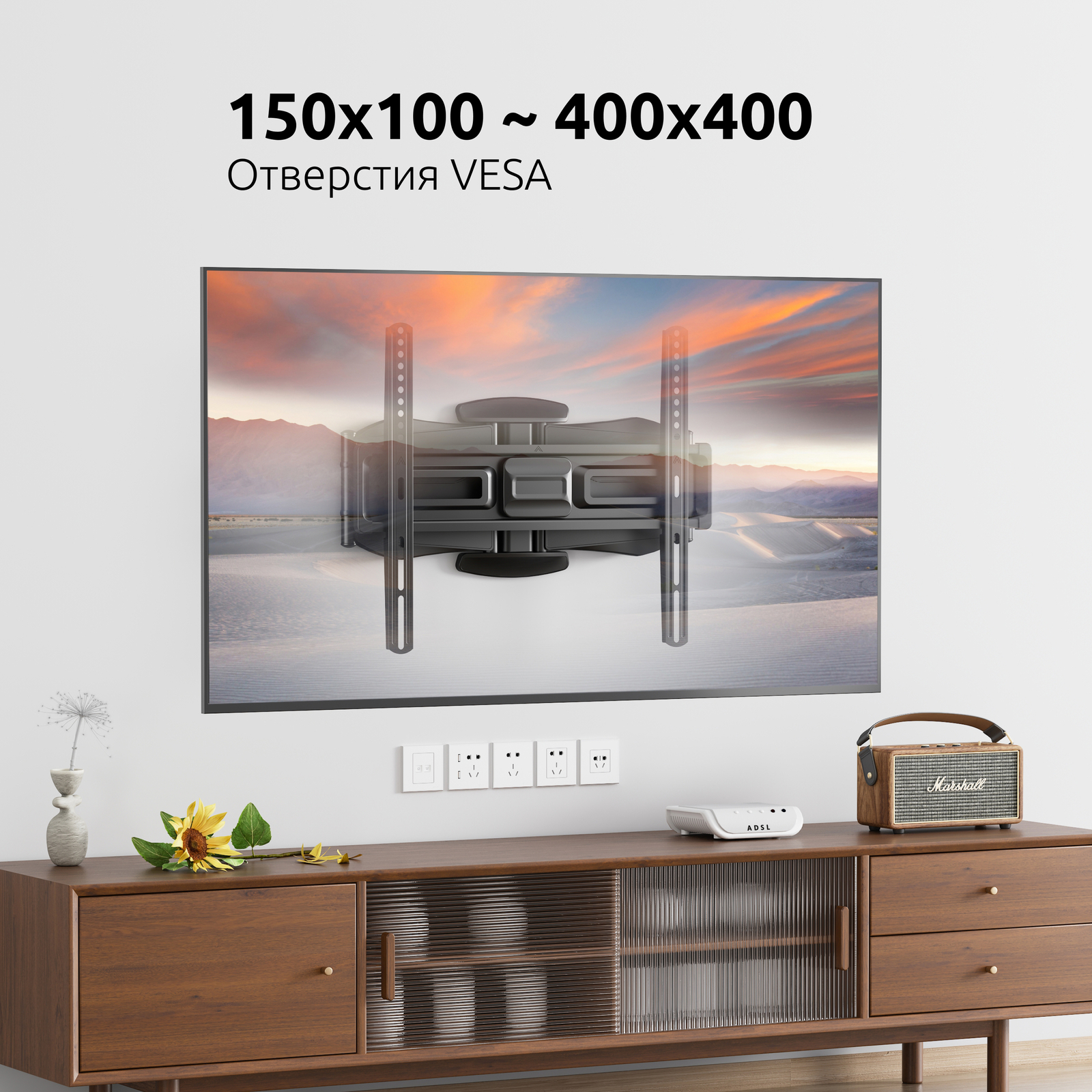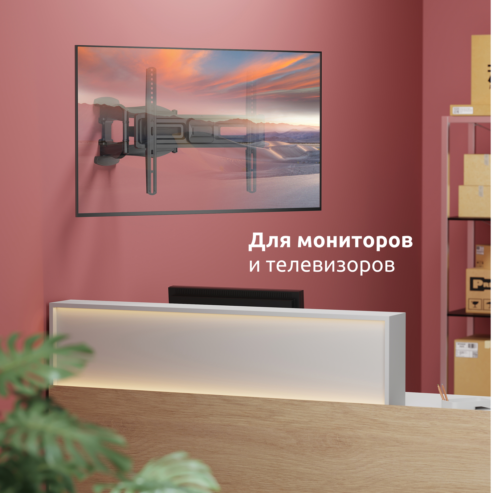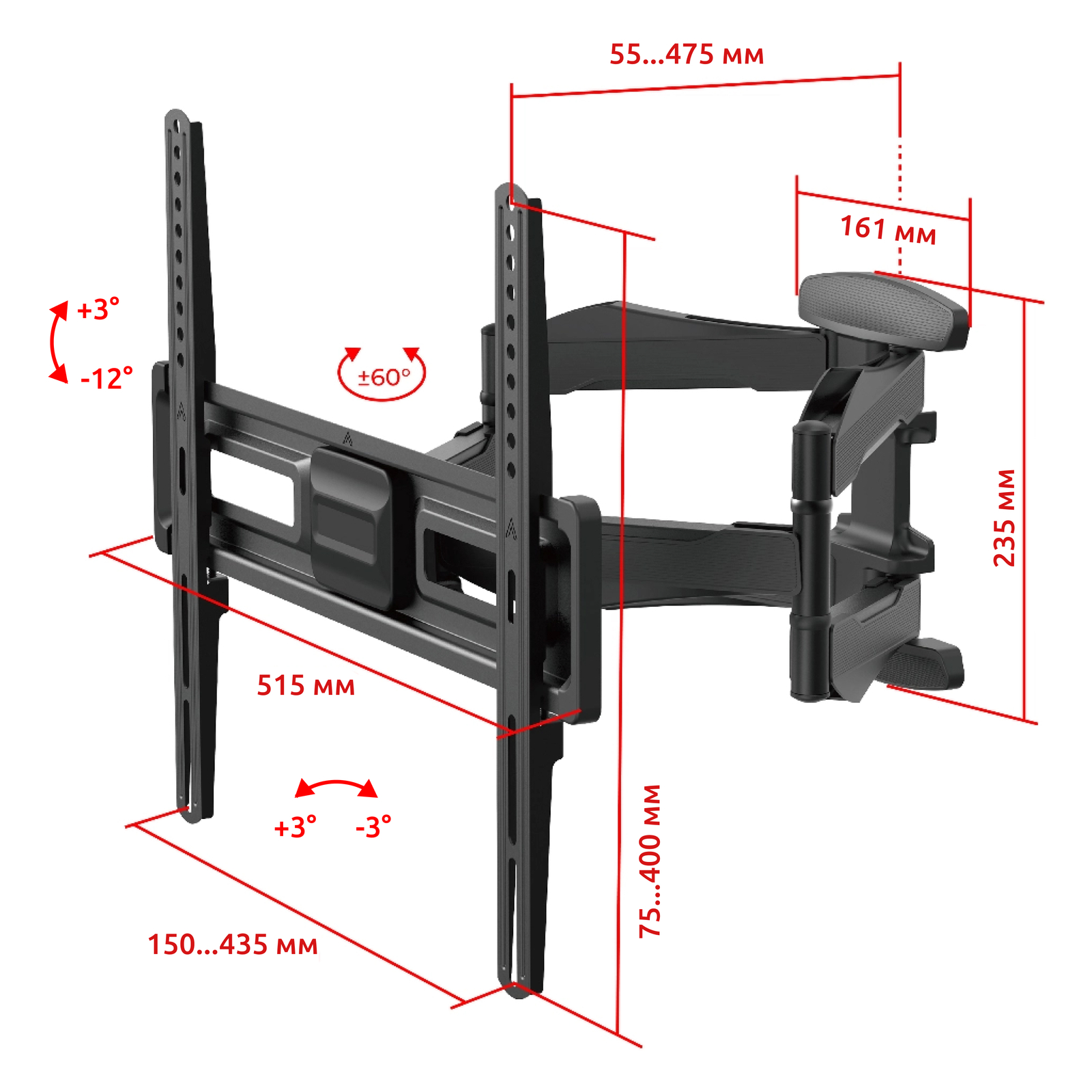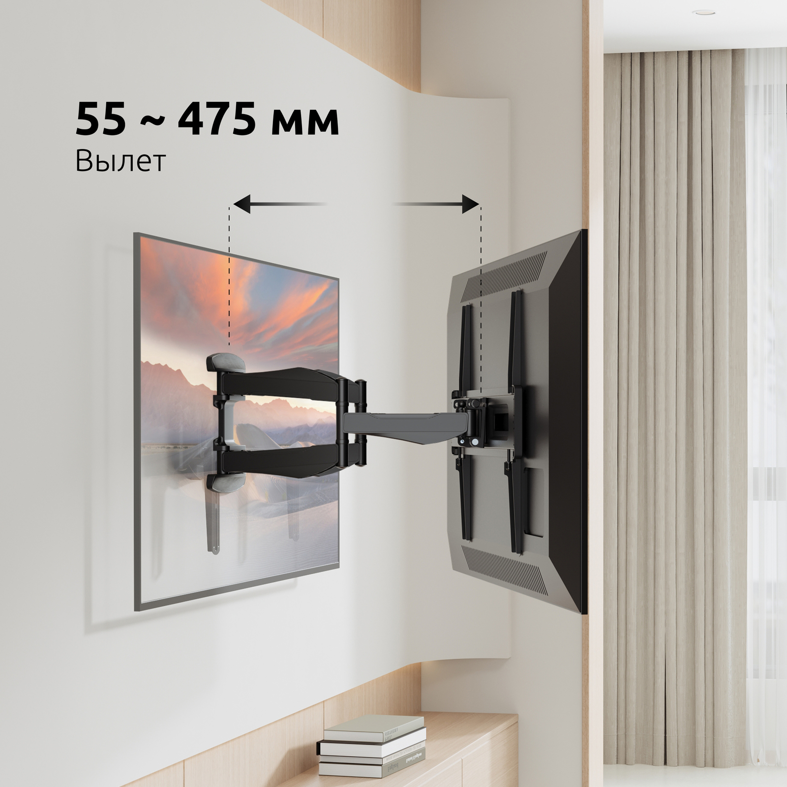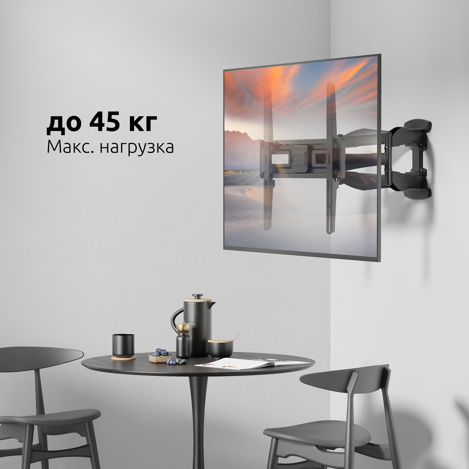 - Тип кронштейна: Наклонно-поворотный двух рычажный для телевизора
