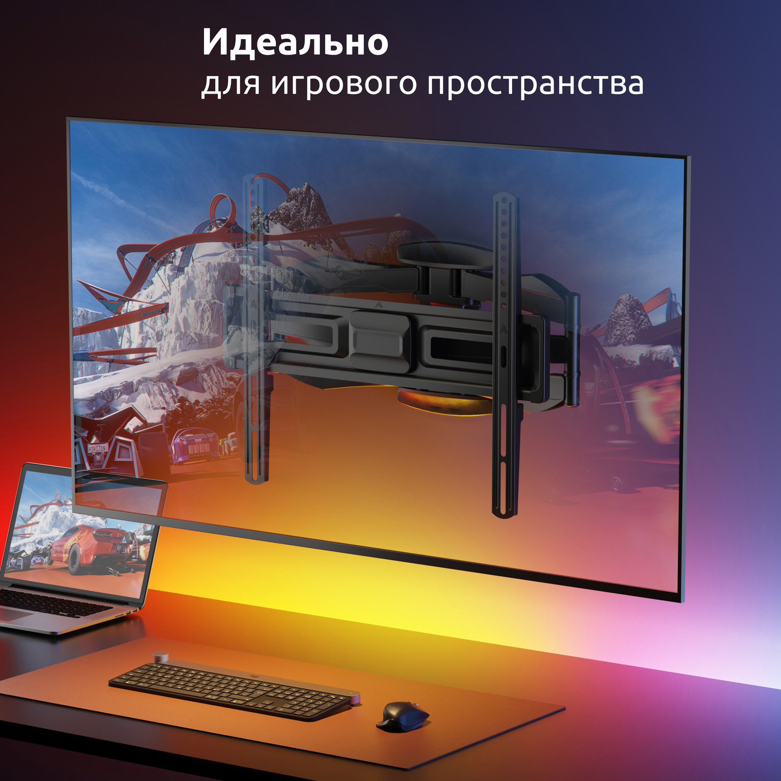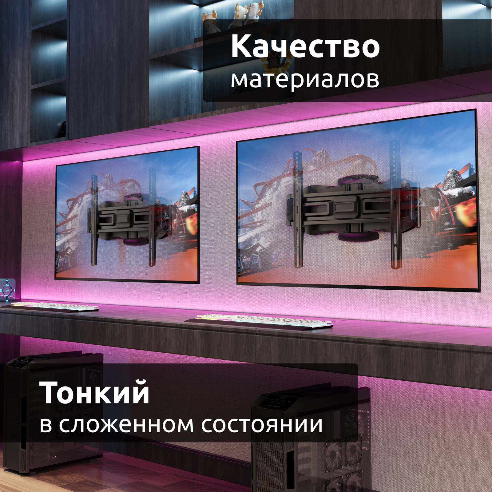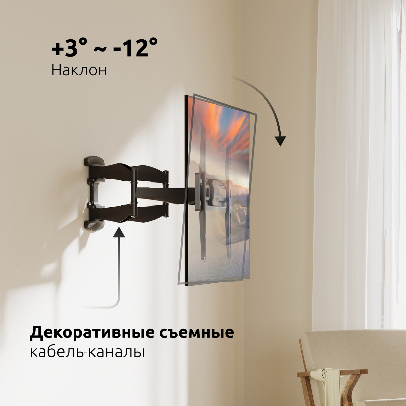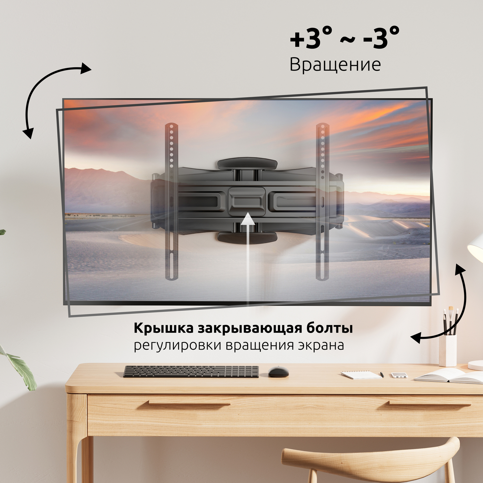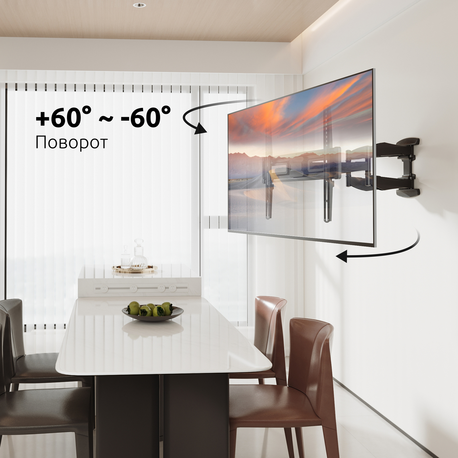 - Тип кронштейна: Наклонно-поворотный двух рычажный для телевизора