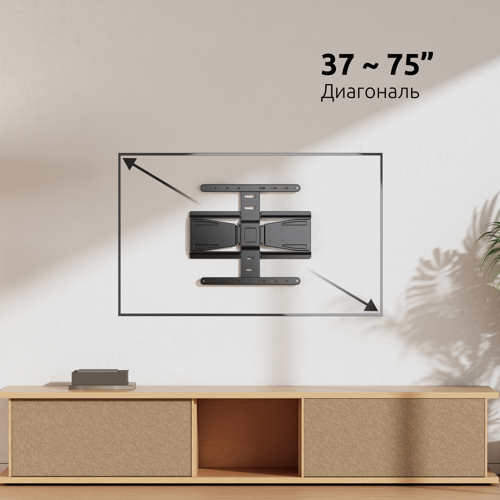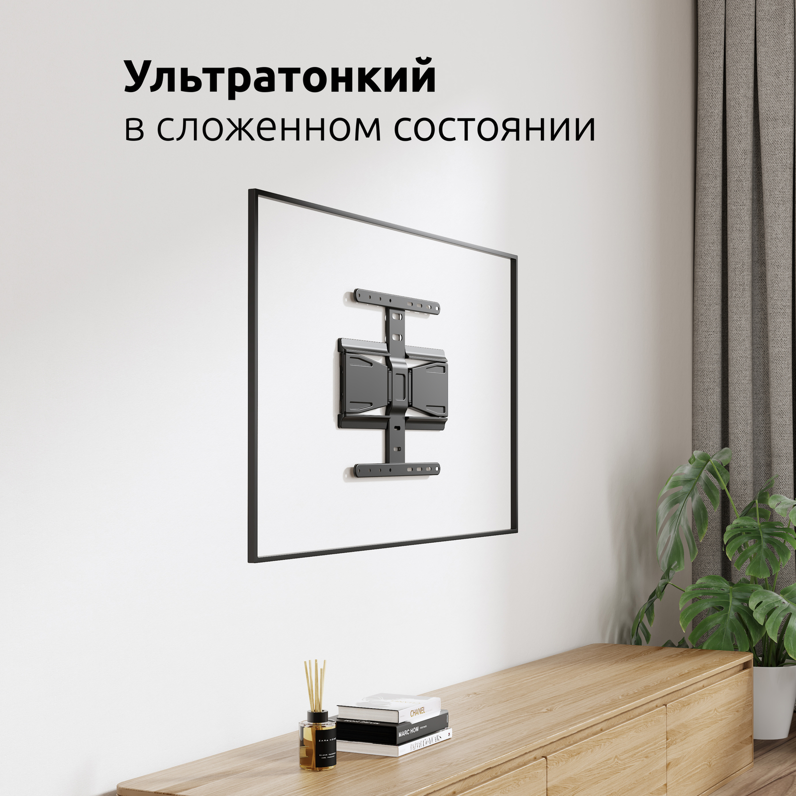 Ультра тонкий, поворотно-наклонный кронштейн для телевизора или монитора на стену с телескопической системой вылета, диагональ 37-75"
