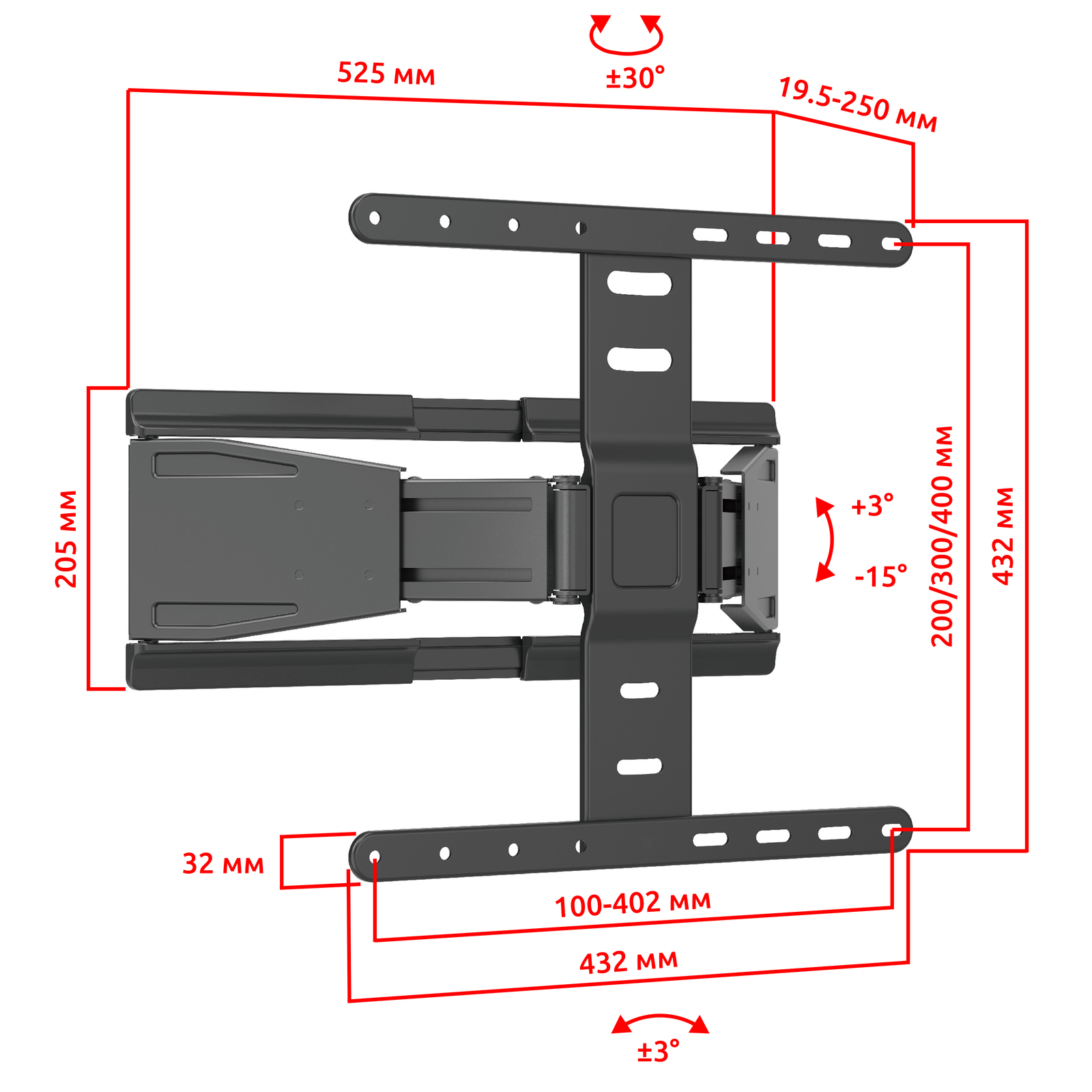 - Тип кронштейна: Настенный, наклонно поворотный, ультра тонкий
