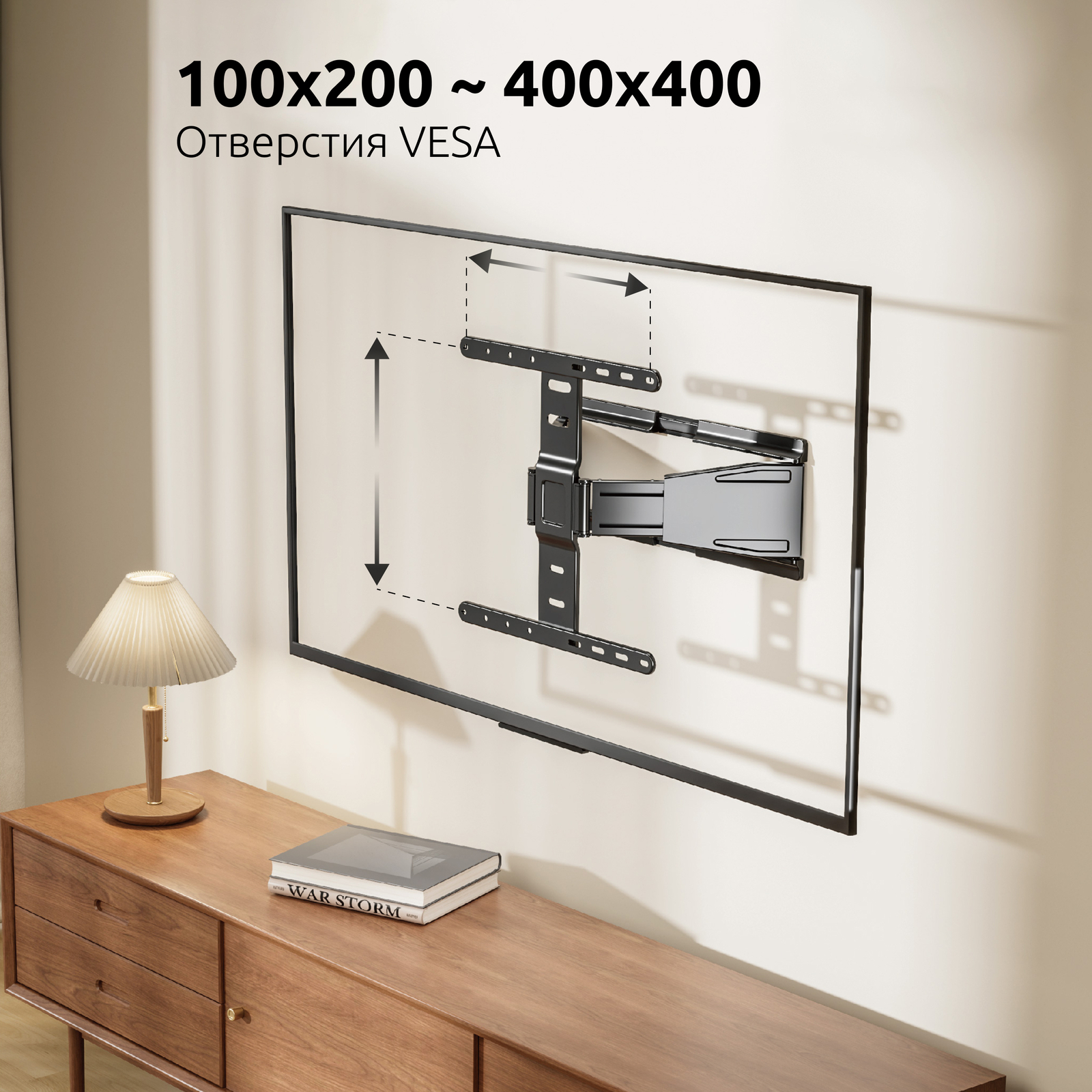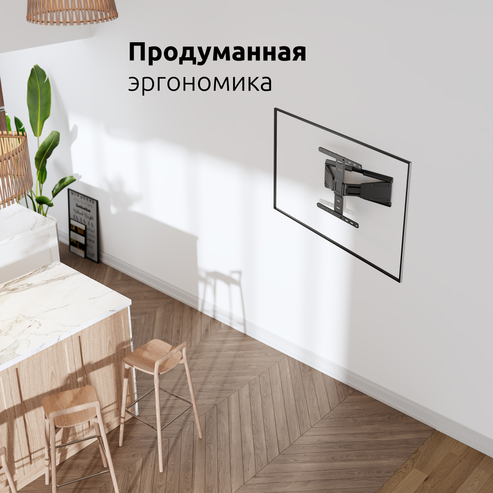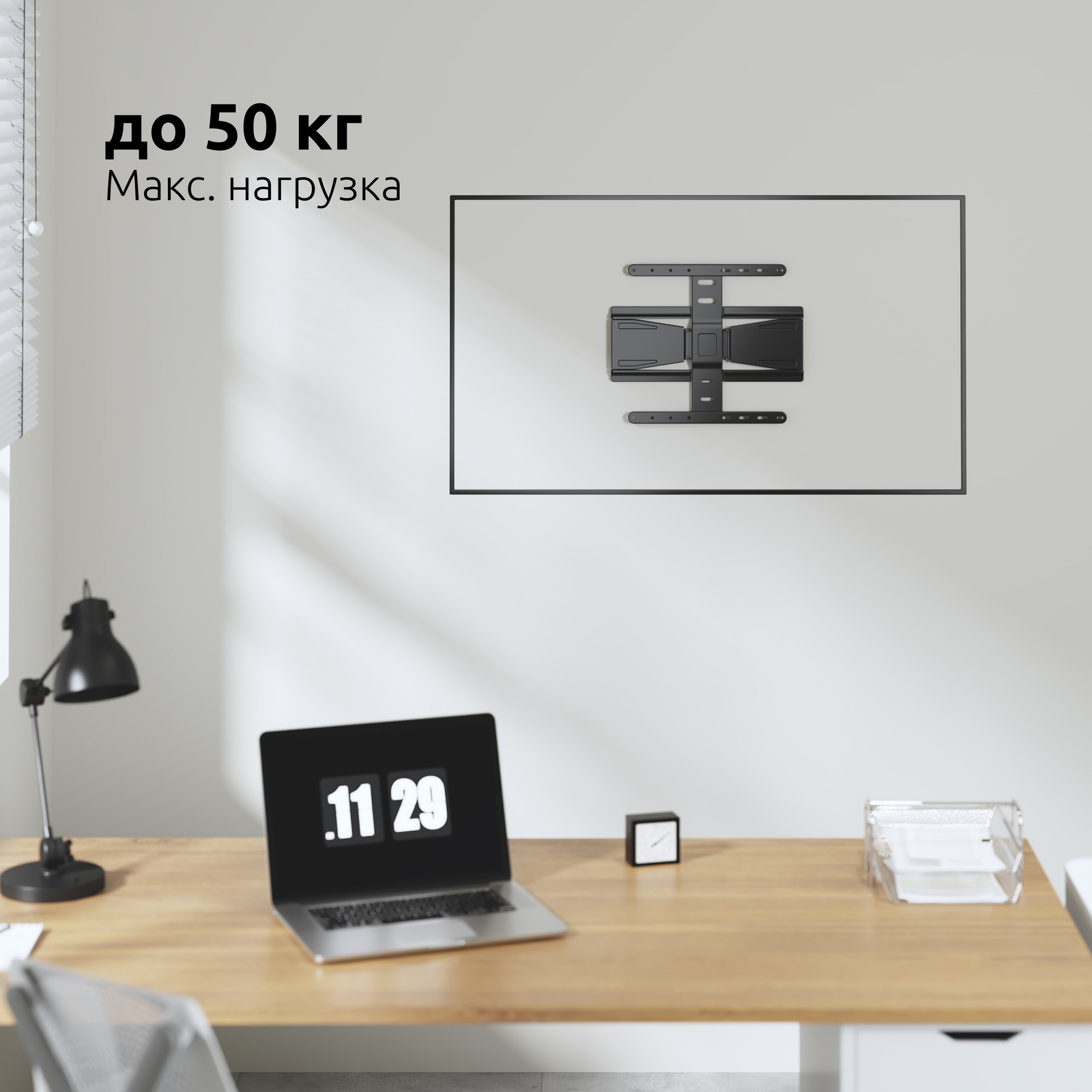 Он идеально подходит для телевизоров и мониторов с большим весом − кронштейн выдерживает до 50 кг.