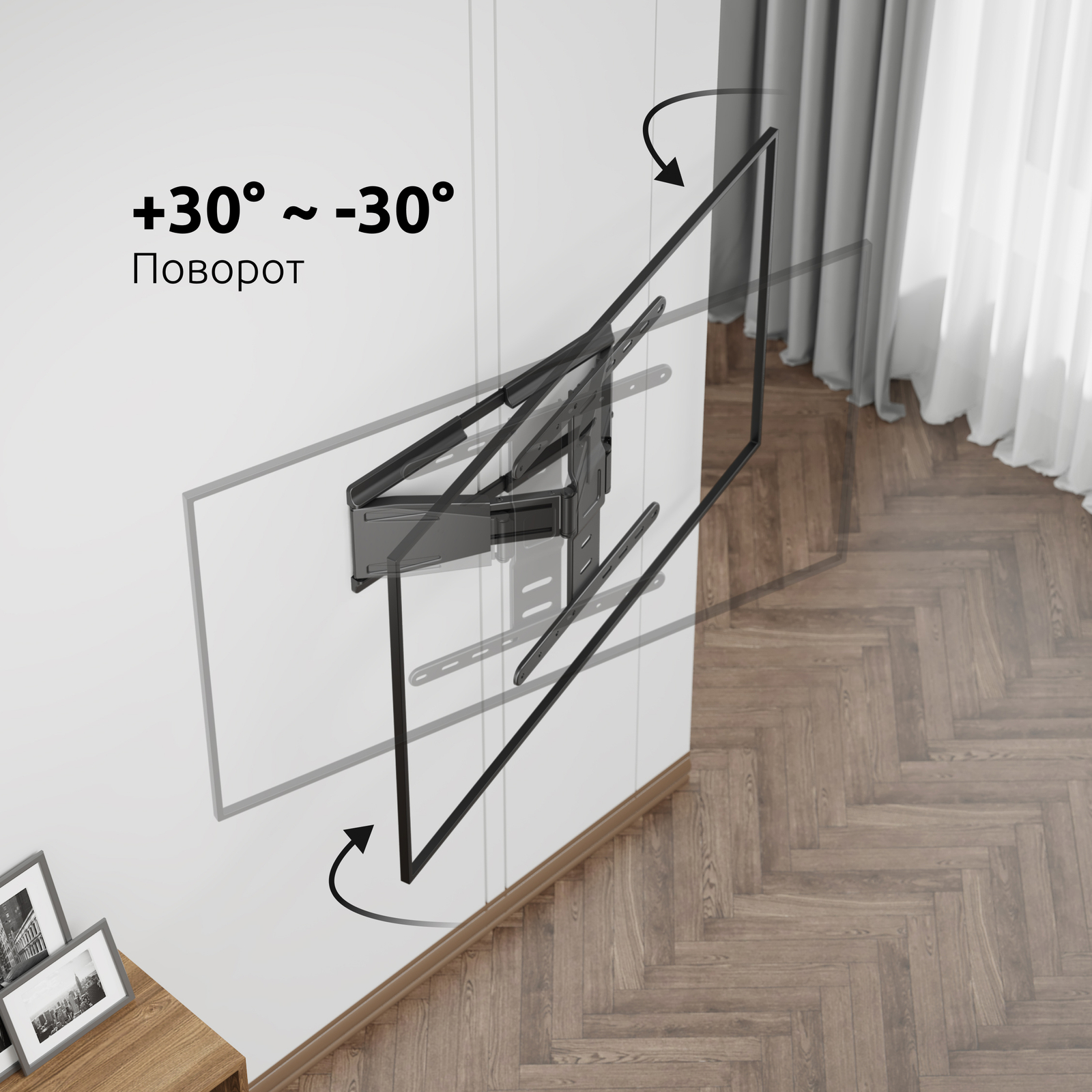 Вас порадуют ультра компактность и аккуратный внешний вид кронштейна, а главным его преимуществом станет функция телескопического вылета, что упростит подключение проводов, упростит навеску и даст возможность сделать небольшой поворот экрана +30°~-30° градусов.