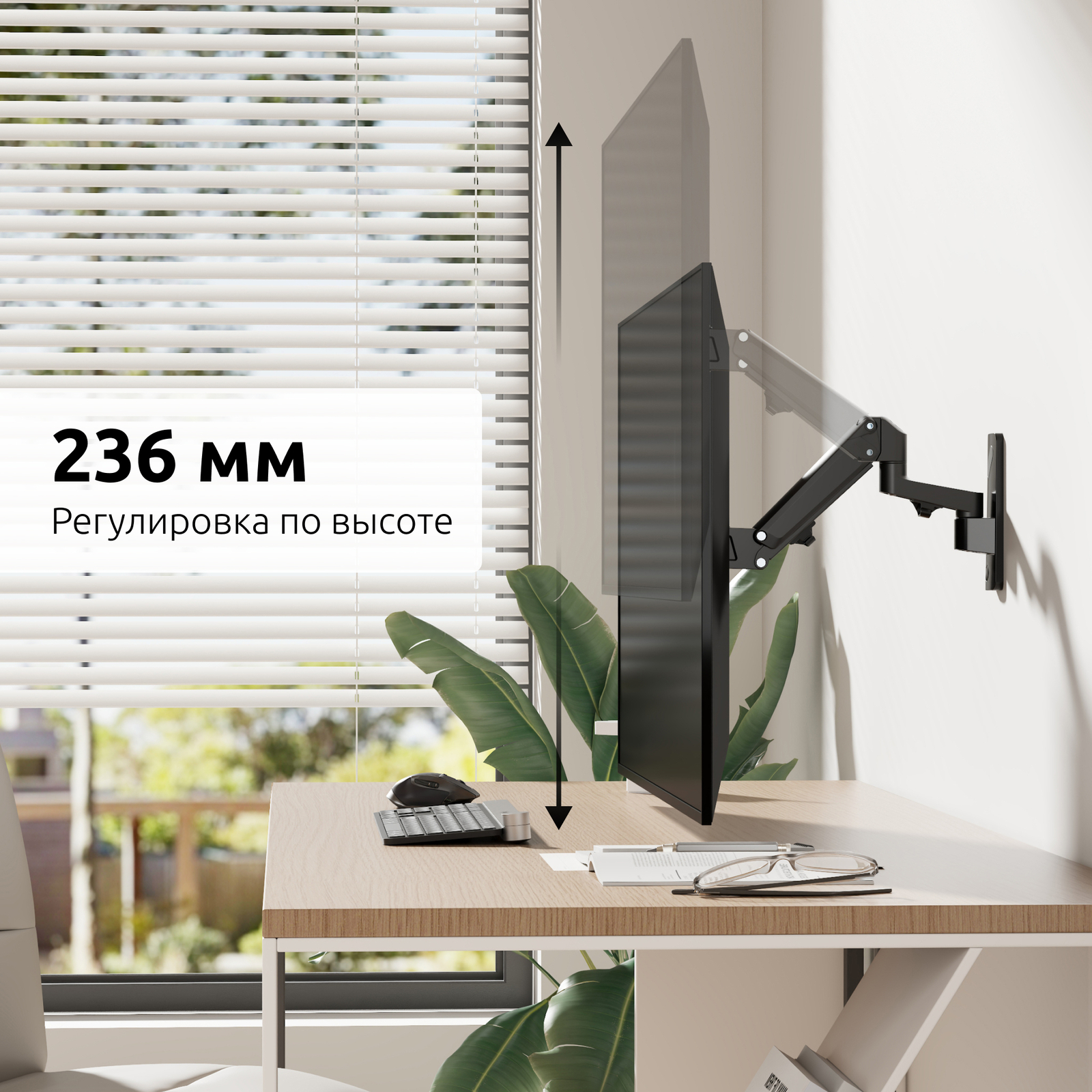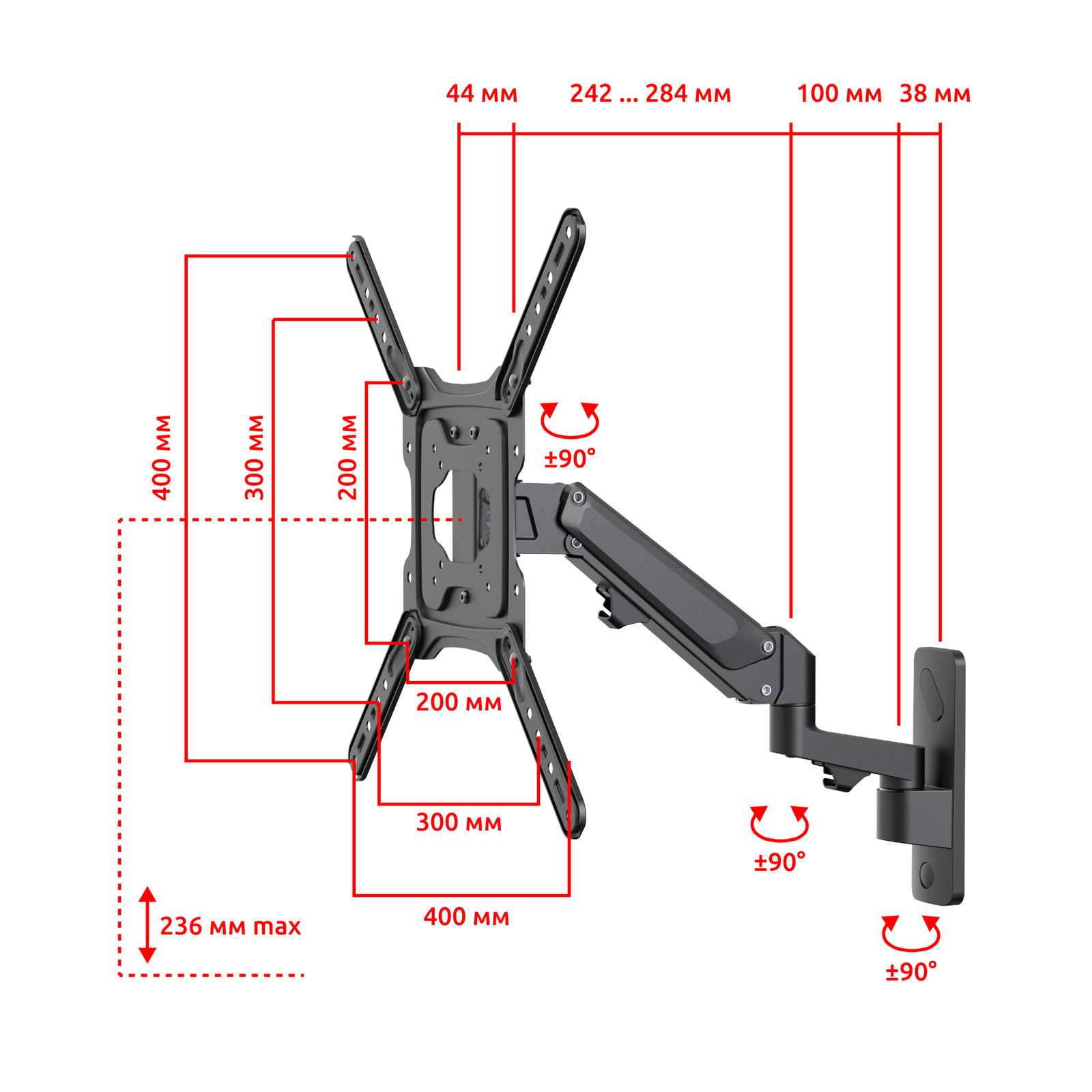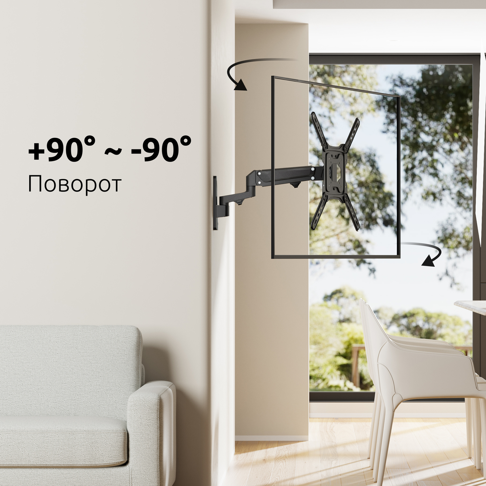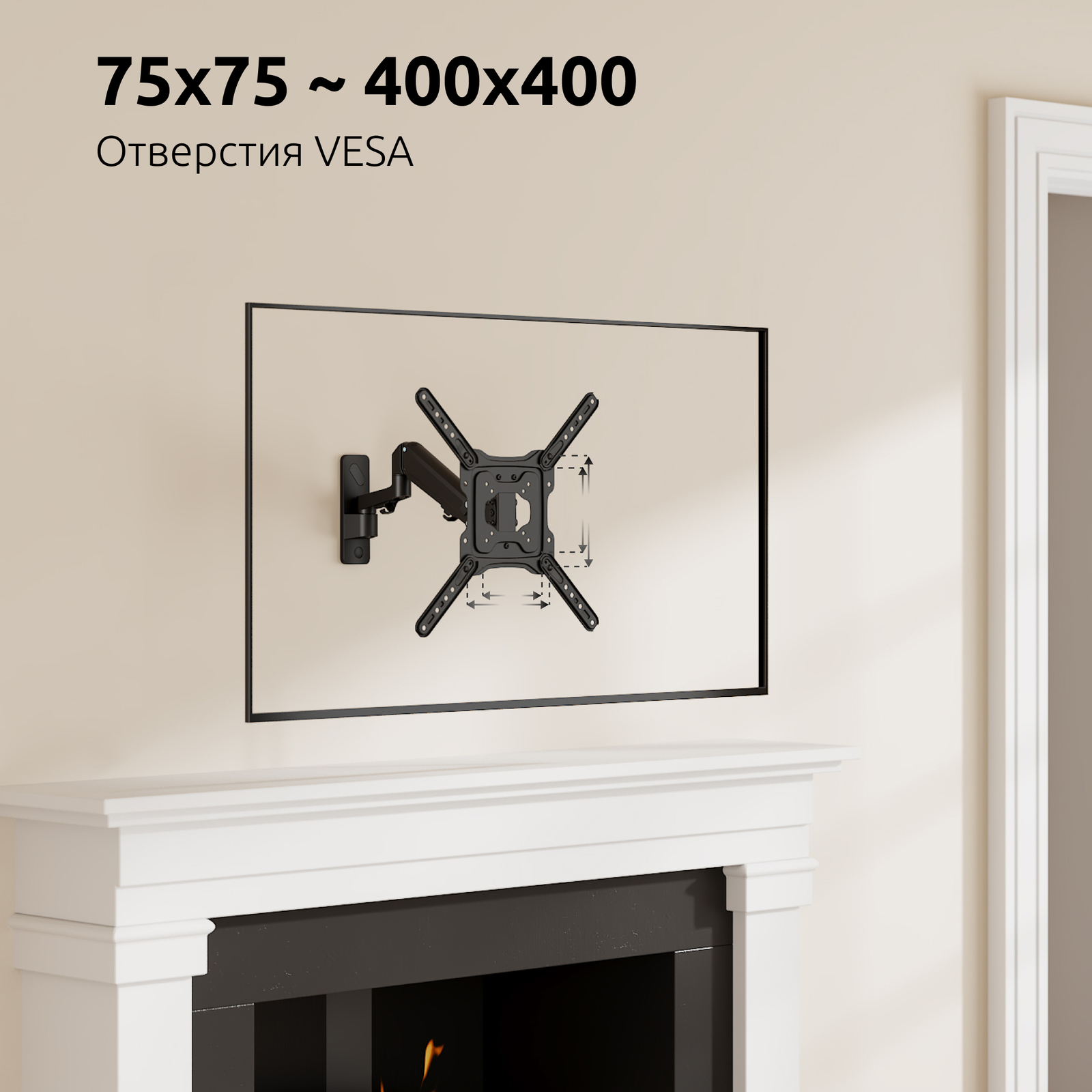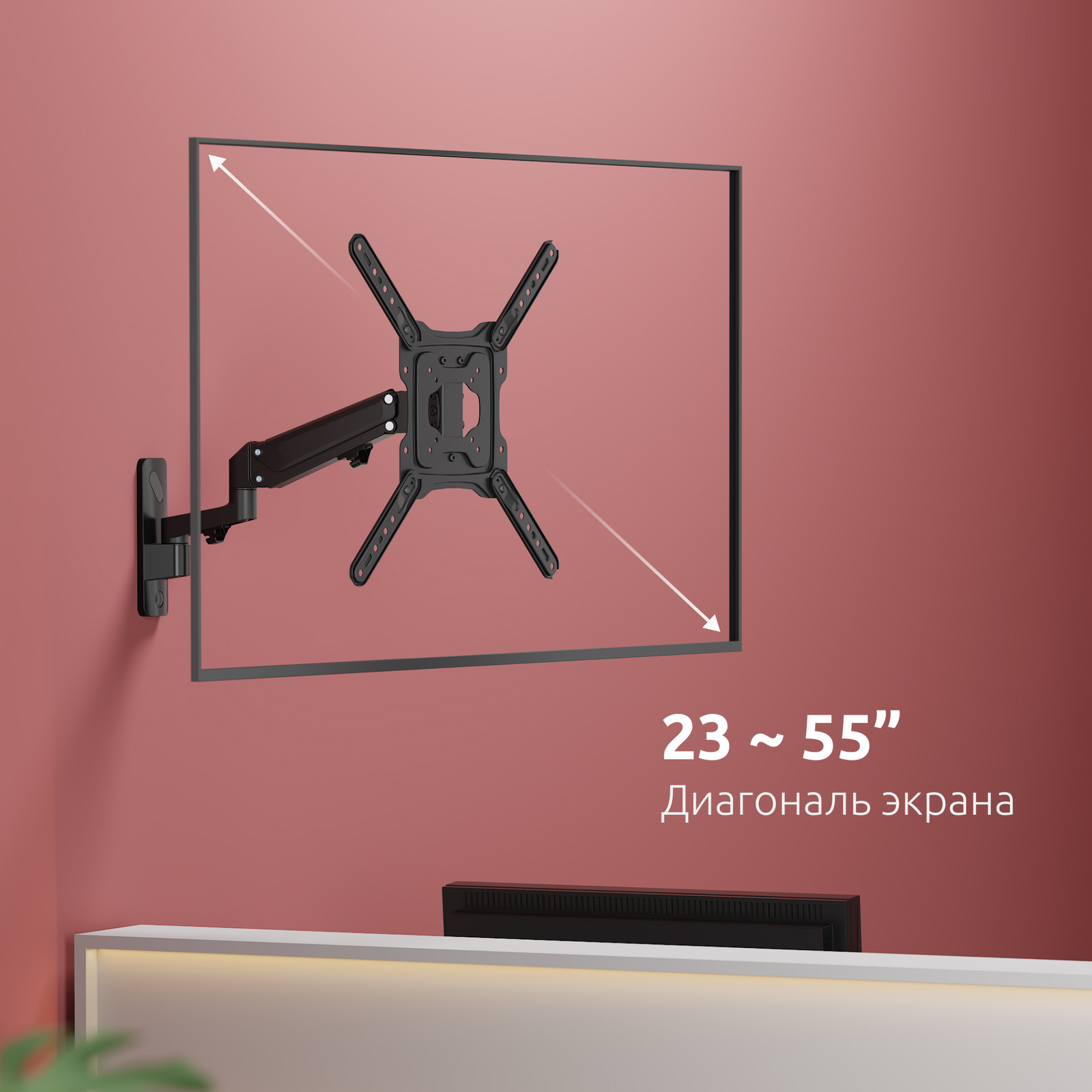 Кронштейн для телевизора или монитора, диагональ 23-55 дюймов, наклонно-поворотный, газлифт, с адаптерами VESA