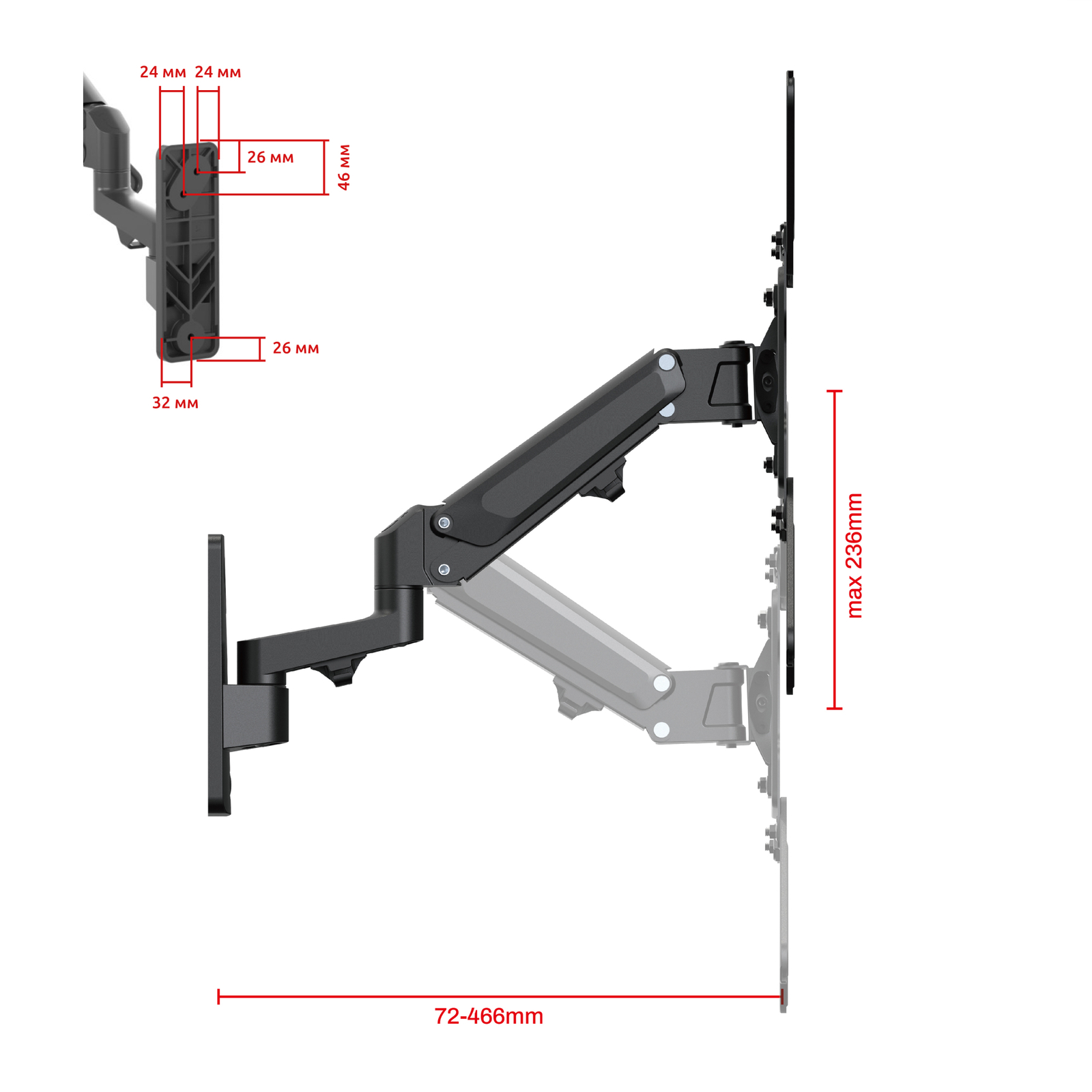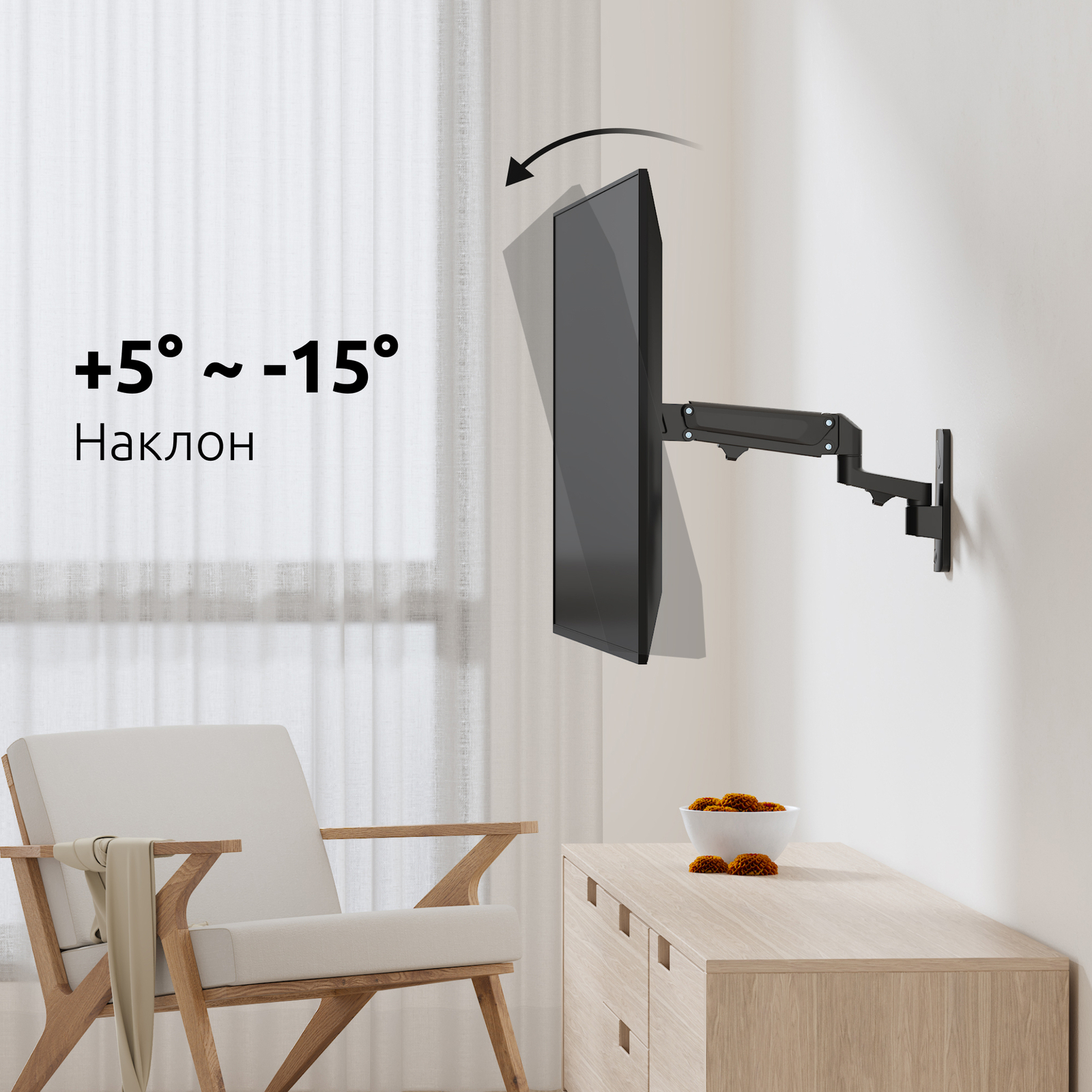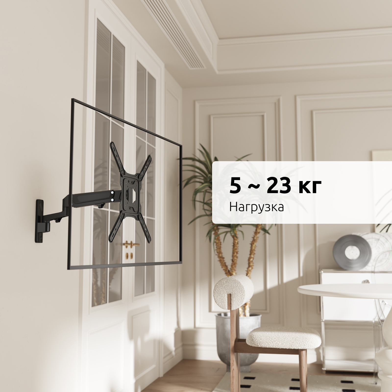 Кронштейн для телевизора или монитора, диагональ 23-55 дюймов, наклонно-поворотный, газлифт, с адаптерами VESA