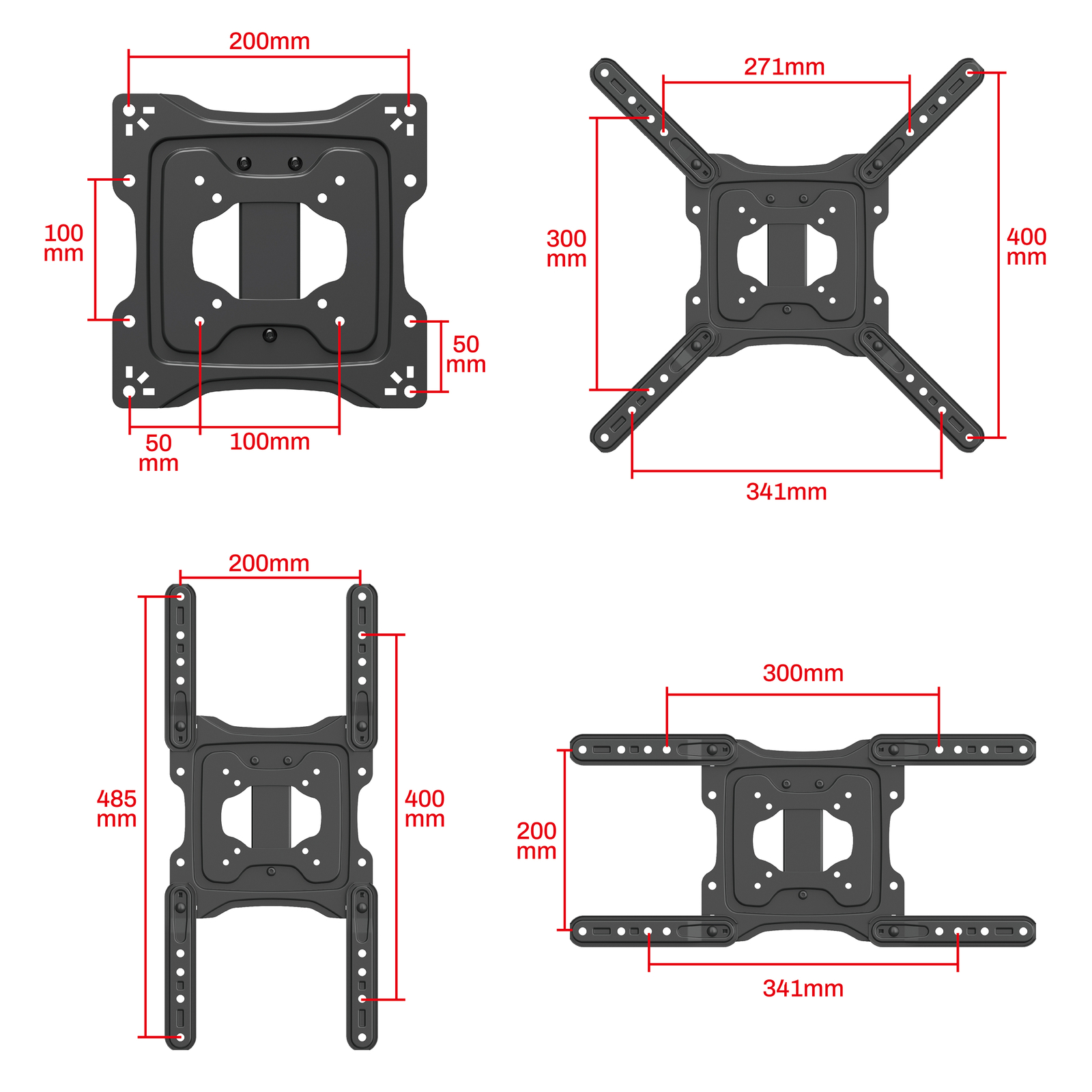 - Совместимость: Кронштейн подходит для большинства телевизоров и мониторов популярных брендов, среди которых Samsung, LG, Sony, KIVI, Tcl, Xiaomi Mi, SUPRA, Panasonic, Hyundai, Erisson, Asano, Horizont, JVC, Thomson, Sharp, Toshiba, Skyworth, BBK, AVEL, Витязь, Веко, BQ, DEXP, SkyLine, Pioneer, Rolsen, Harper, Hisense, Hitachi, Polarline, Prestigio, Telefunken и других.
