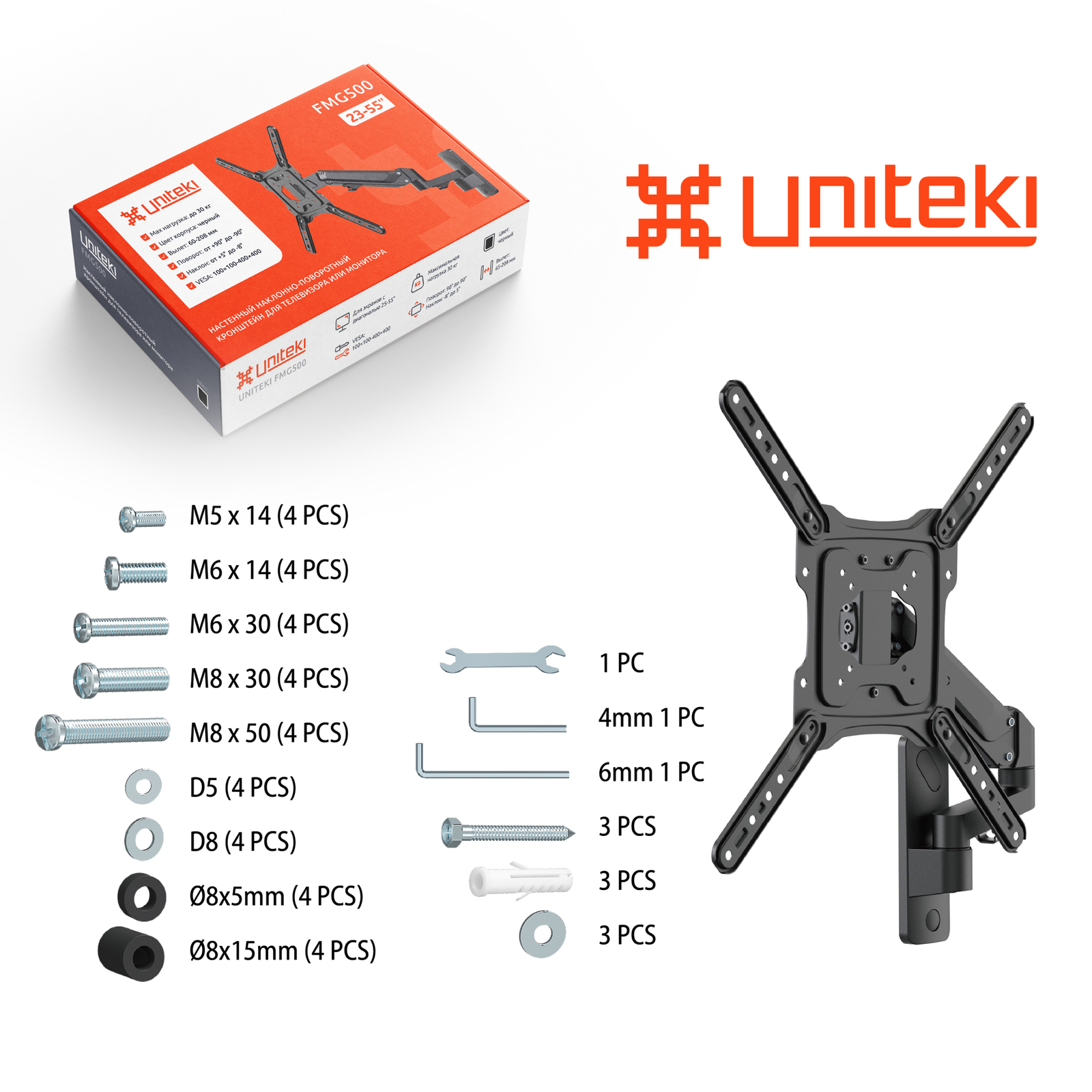 Поворачивайте телевизор или монитор на 180 градусов, наклоняйте вверх и вниз, придвигайте или удаляйте от себя, поднимите телевизор или монитор повыше или опустите пониже - всё это может наш кронштейн серии LOFT UNITEKI FMG500.