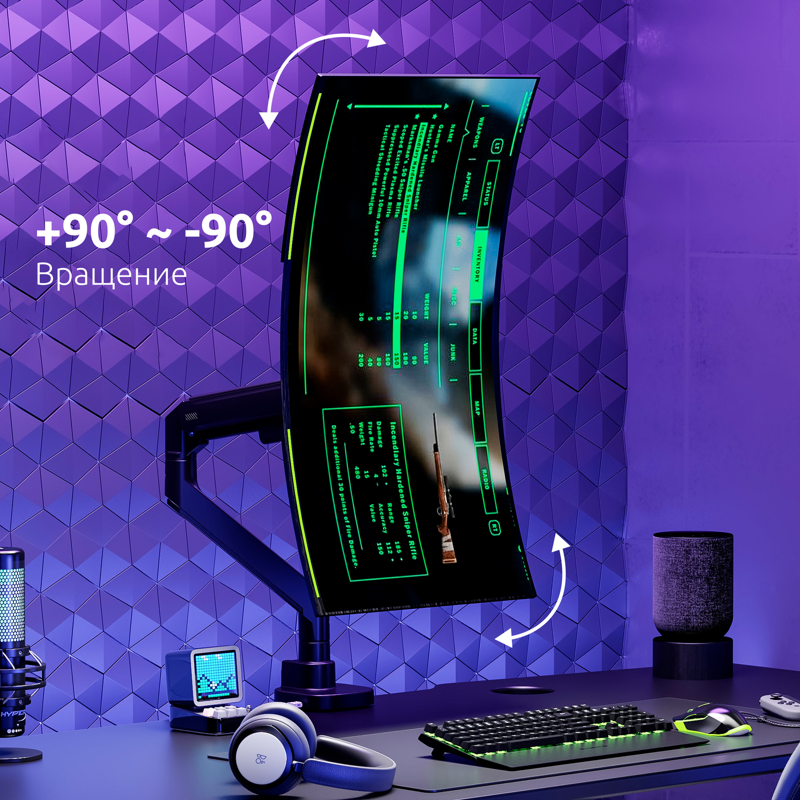 Наклон/Поворот/Выдвижение/Регулируемая высота/Вращение