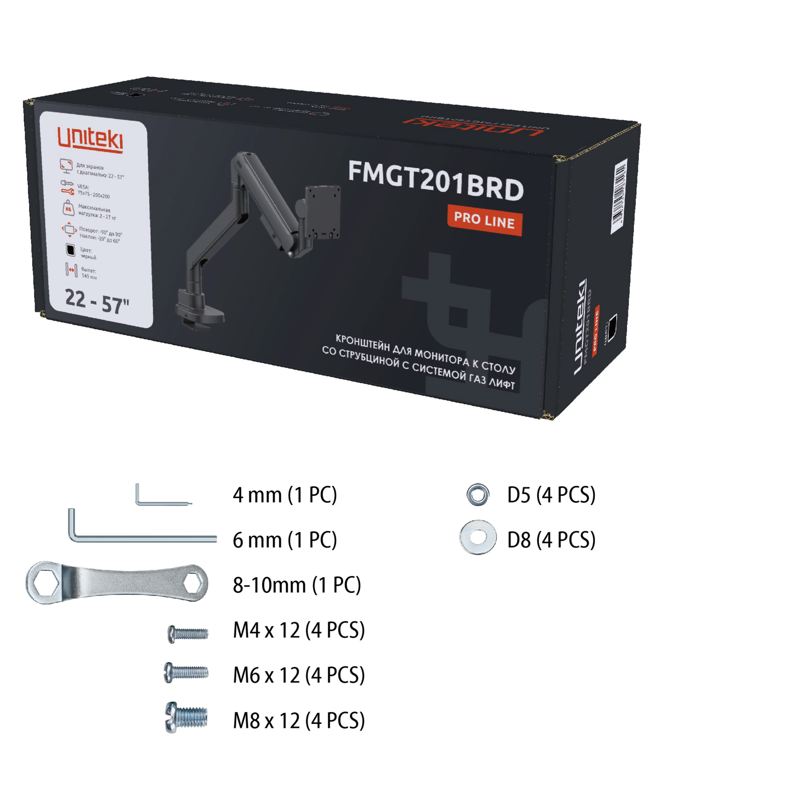 FMGT201BRD – кронштейн из усовершенствованной линейки продуктов UNITEKI с невероятным дизайном, усиленными ребрами жесткости крепежной пластины и удобством навески монитора.