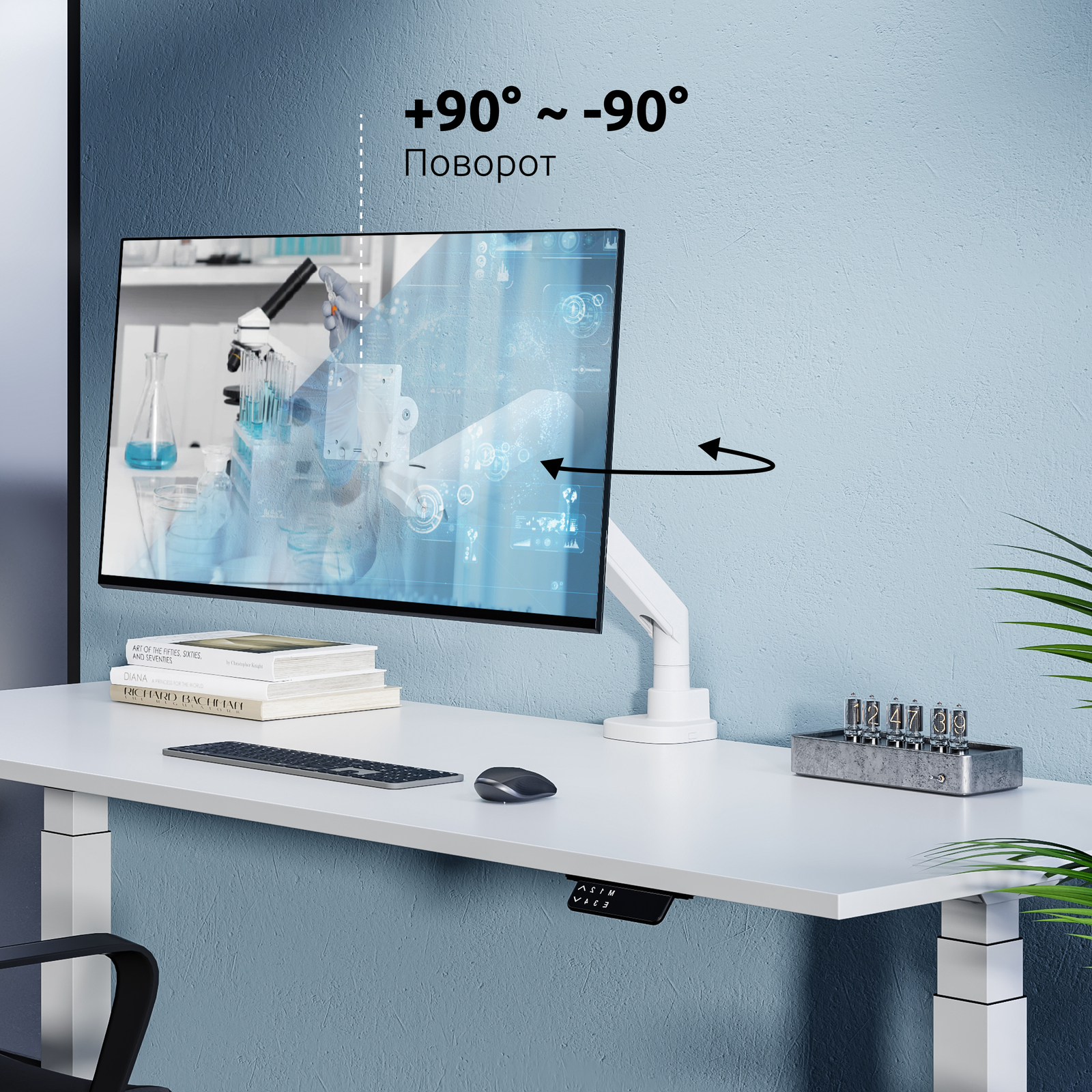 UNITEKI FMGT201WRD – премиальный настольный кронштейн для одного монитора для тех, кто ценит качество и хай-тек эстетику.