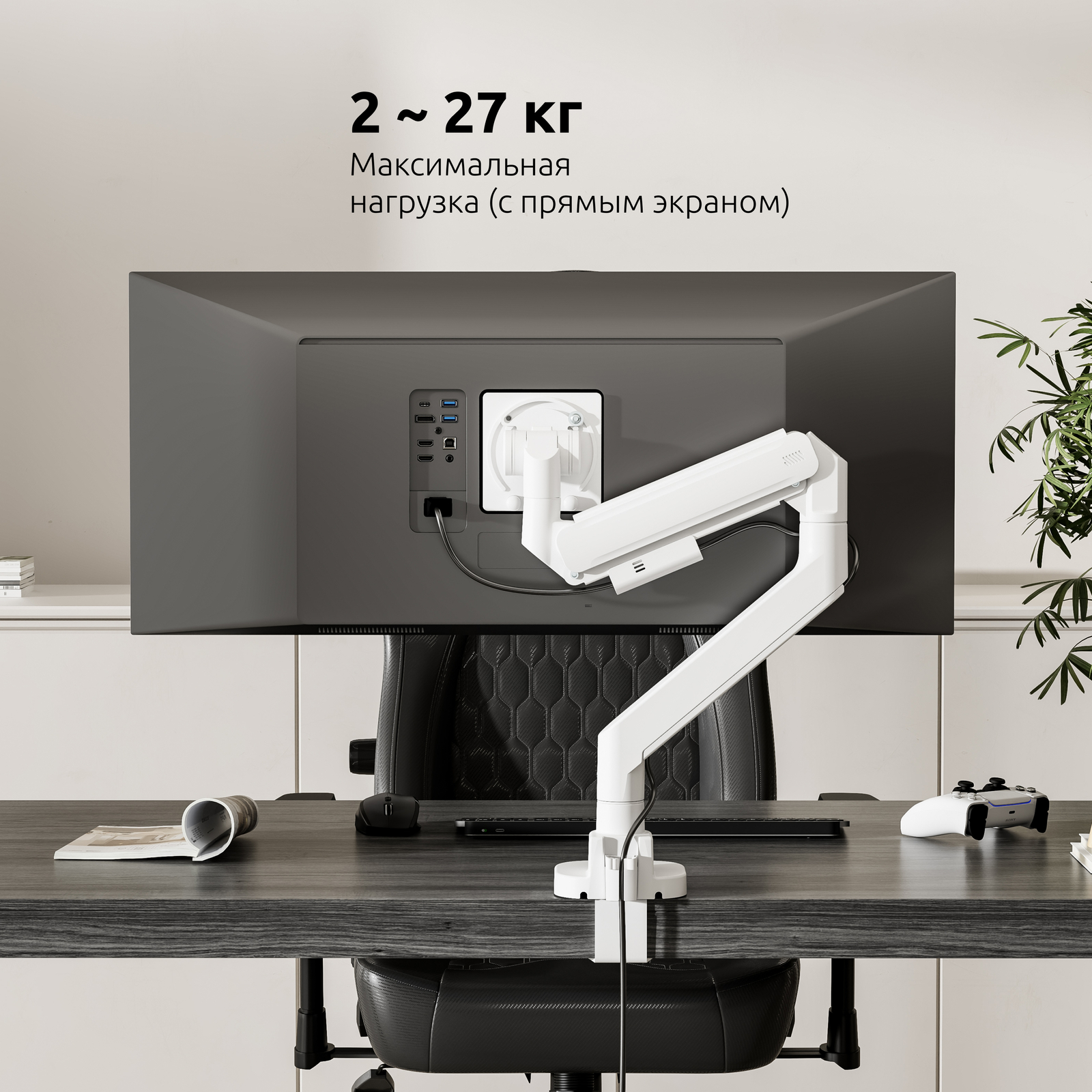Механизм с газовой пружиной внутри корпуса кронштейна дает возможность легко и плавно перемещать монитор в любую нужную вам позицию, следуя за положением вашего тела во время работы за компьютером, максимально снижая нагрузку на зрение и позвоночник.