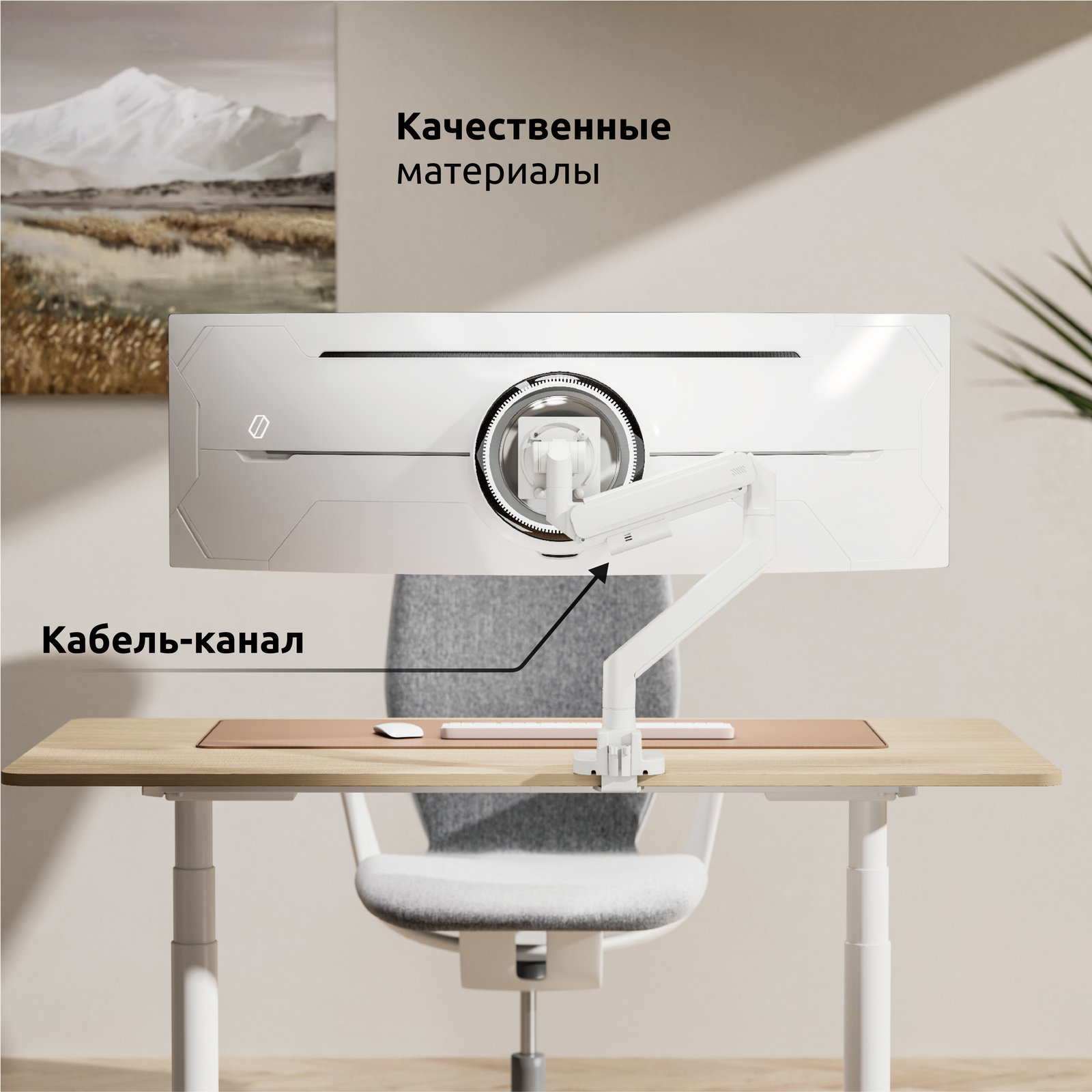У FMGT201WRD стильный алюминиевый корпус с кабель-каналом из прочного пластика и усиленная система газ лифт, а так же ограничители поворотов и вращения от случайных ударов монитора о стены или стол..