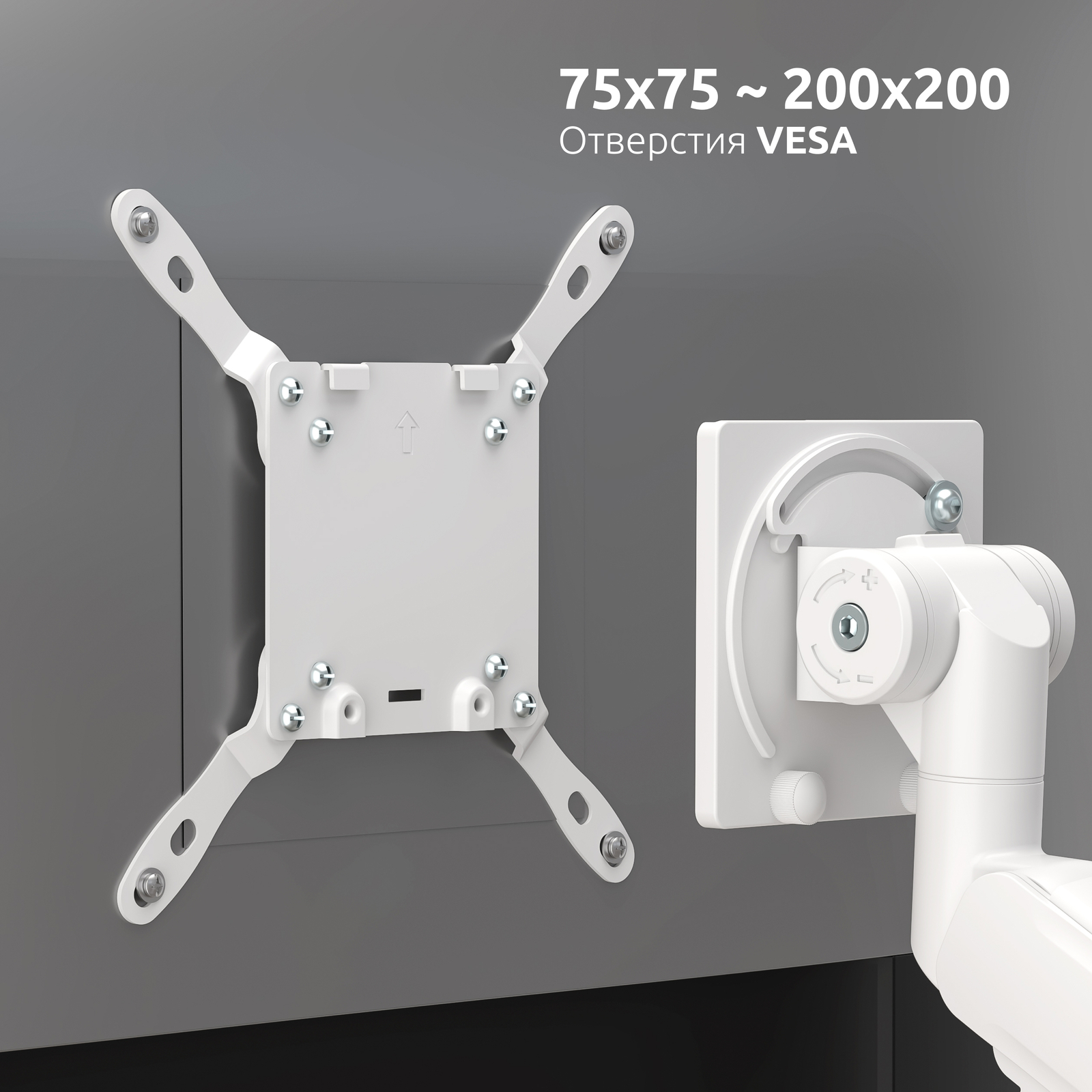 Обращаем внимание, что при выборе кронштейна необходимо ориентироваться на несколько параметров: стандарт VESA (расстояние между крепежными отверстиями), диагональ экрана, вес монитора и нагрузка на кронштейн.