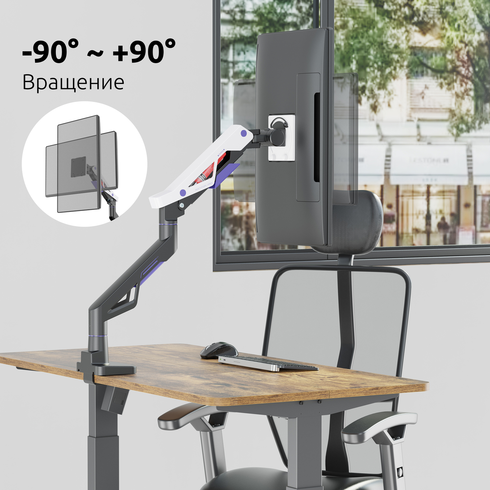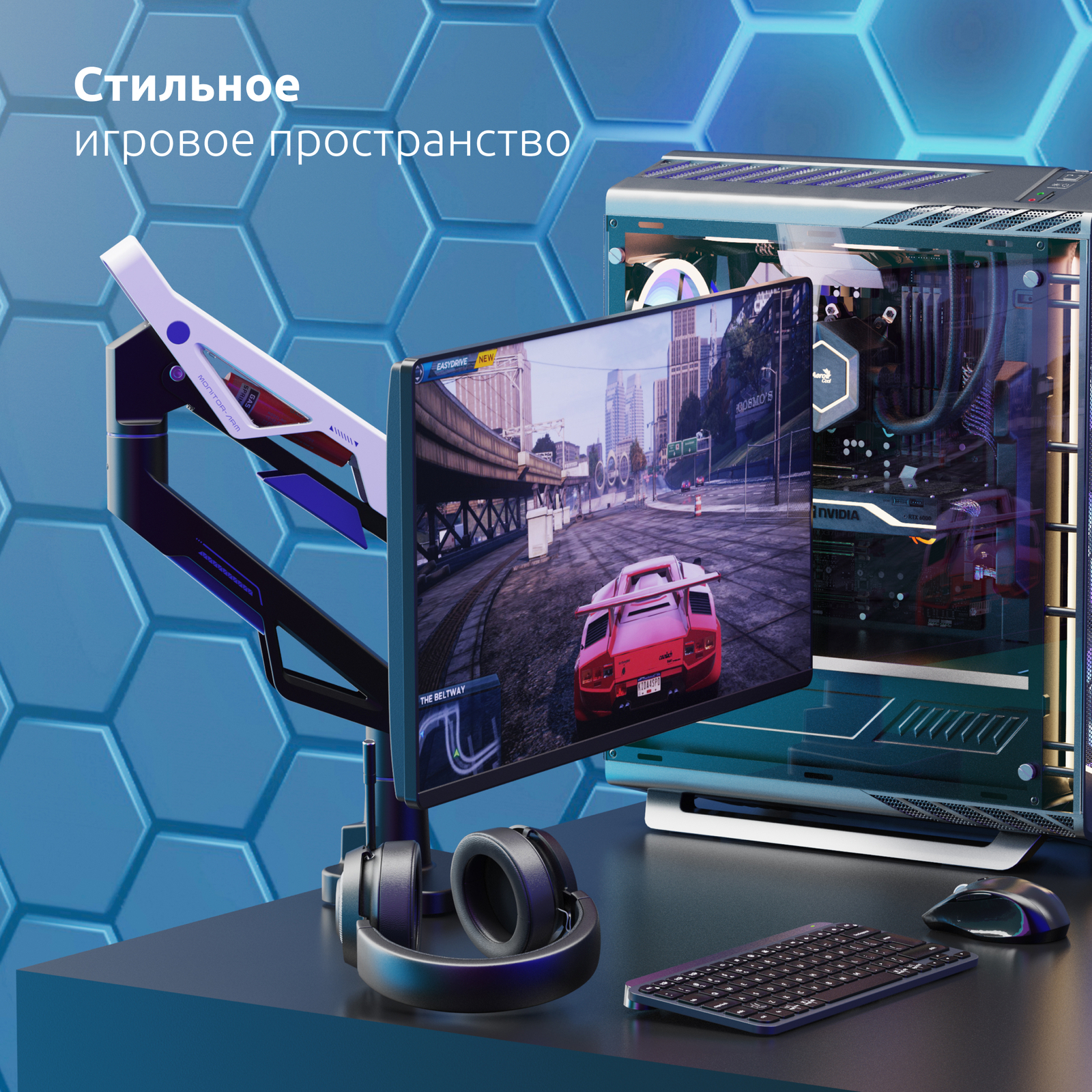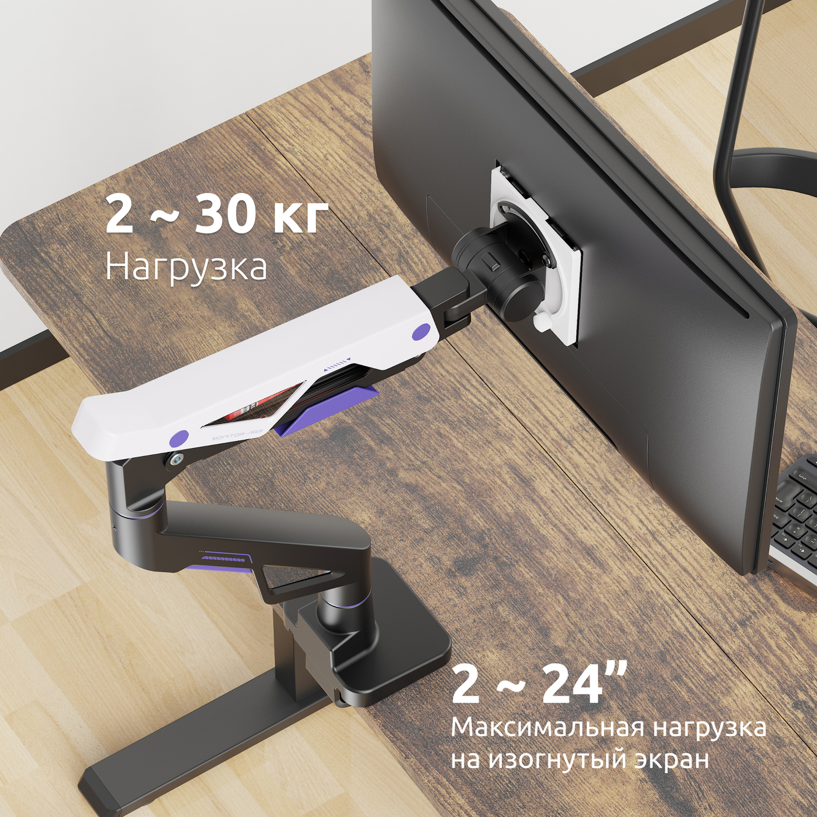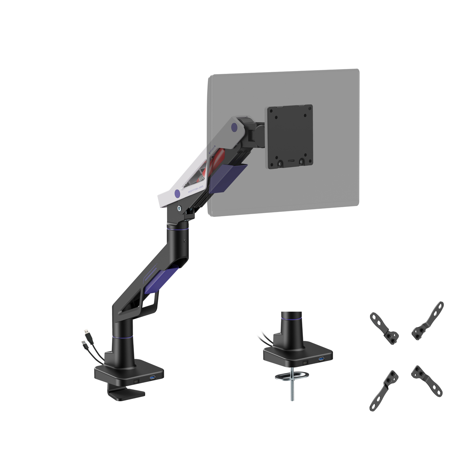 UNITEKI FMGT301GL – премиальный настольный кронштейн для одного монитора, для тех, кто ценит качество, хай-тек эстетику и хочет подчеркнуть индивидуальность своего игрового места.