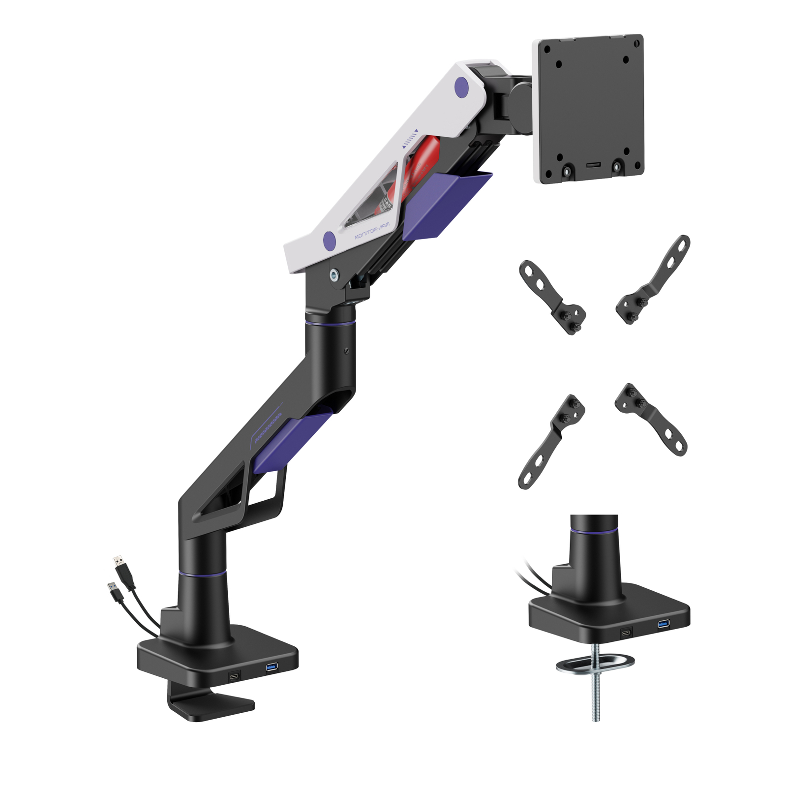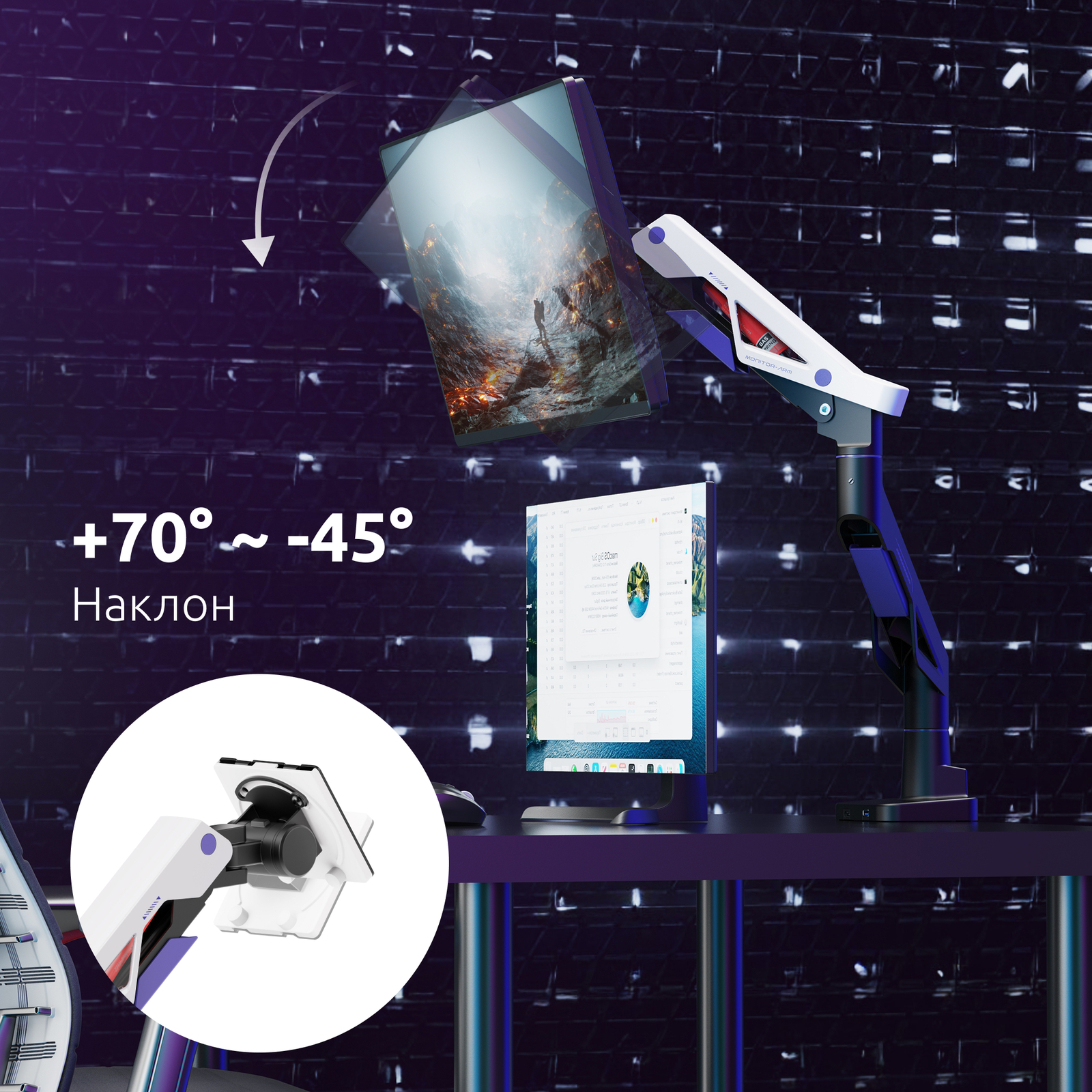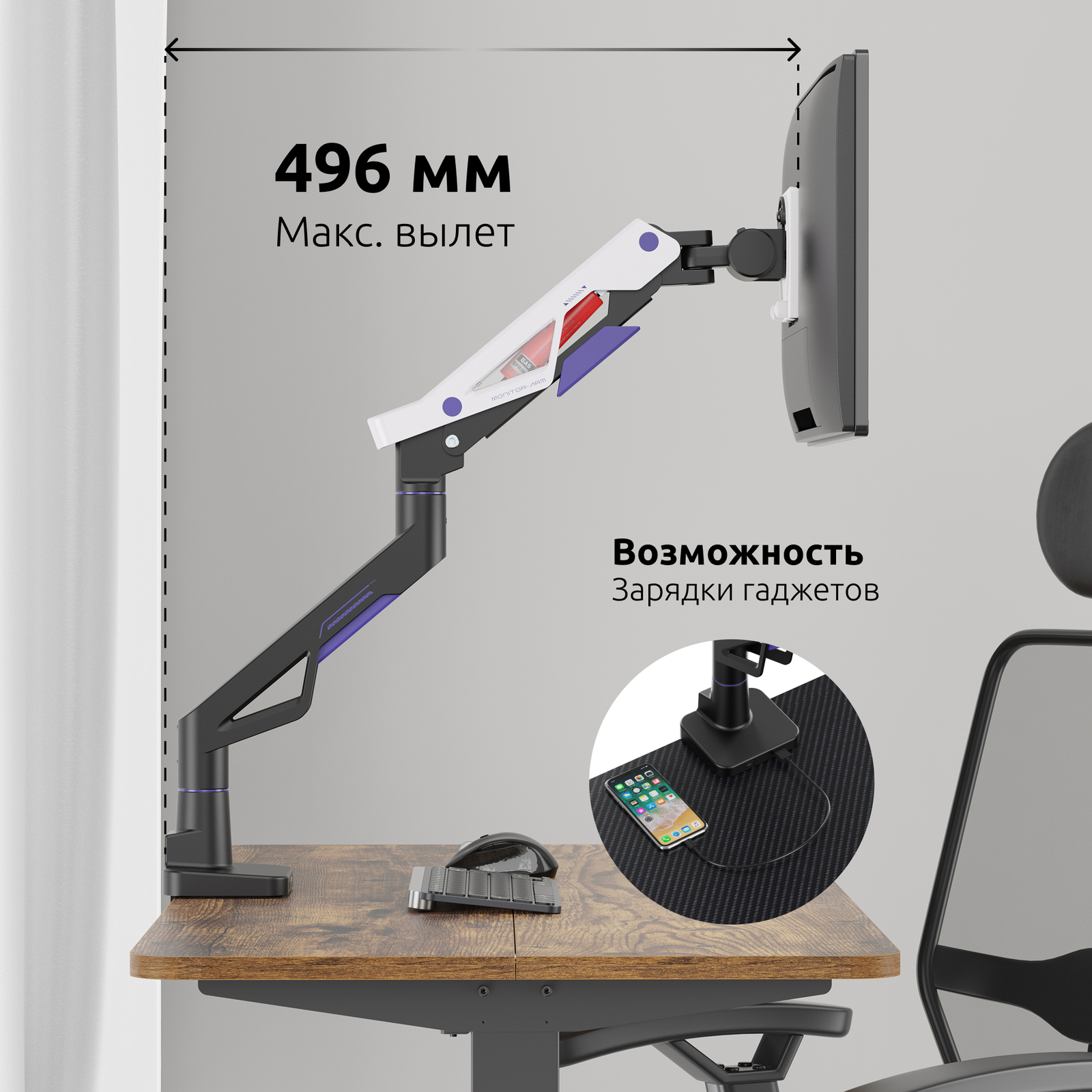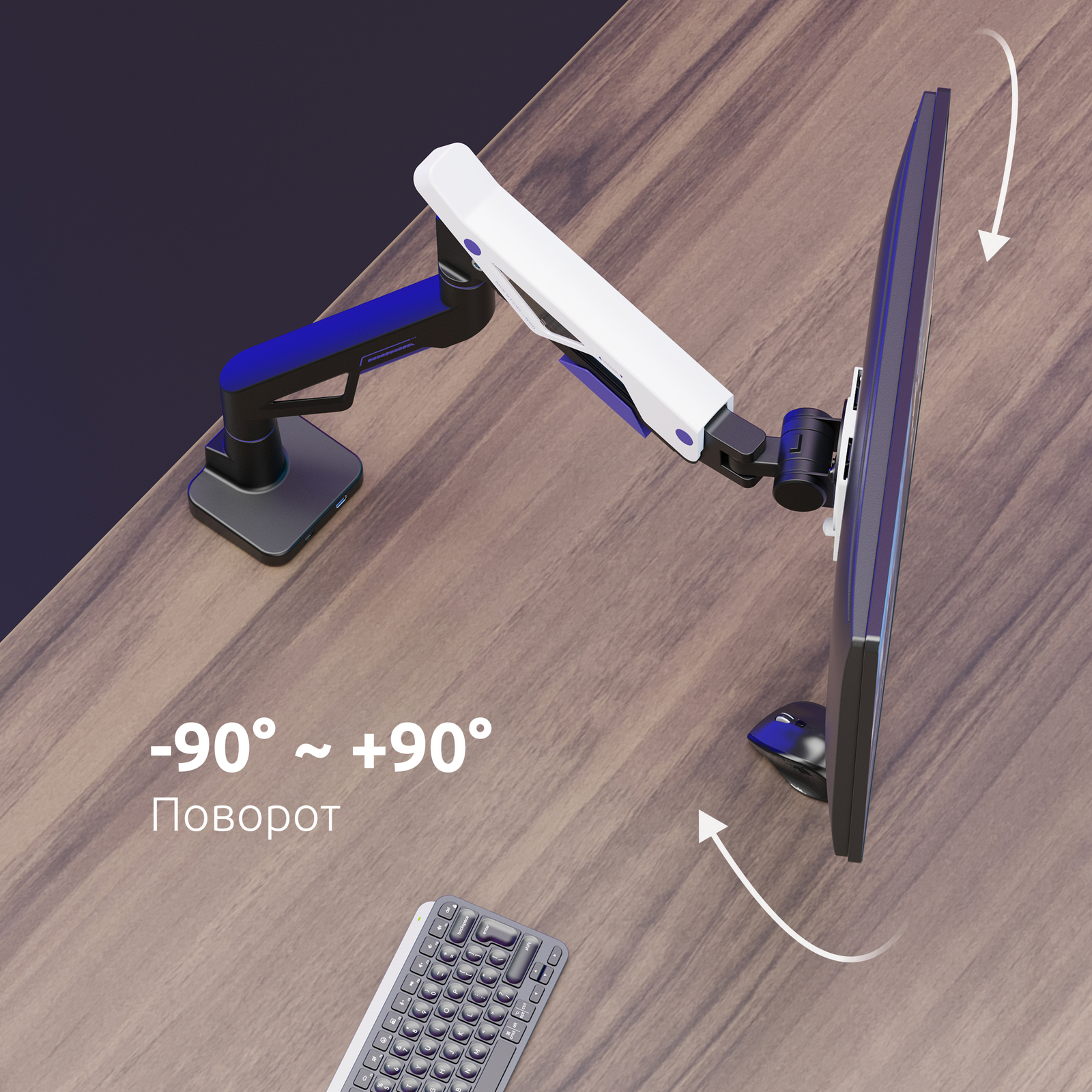 UNITEKI FMGT301GL – премиальный настольный кронштейн для одного монитора, для тех, кто ценит качество, хай-тек эстетику и хочет подчеркнуть индивидуальность своего игрового места.