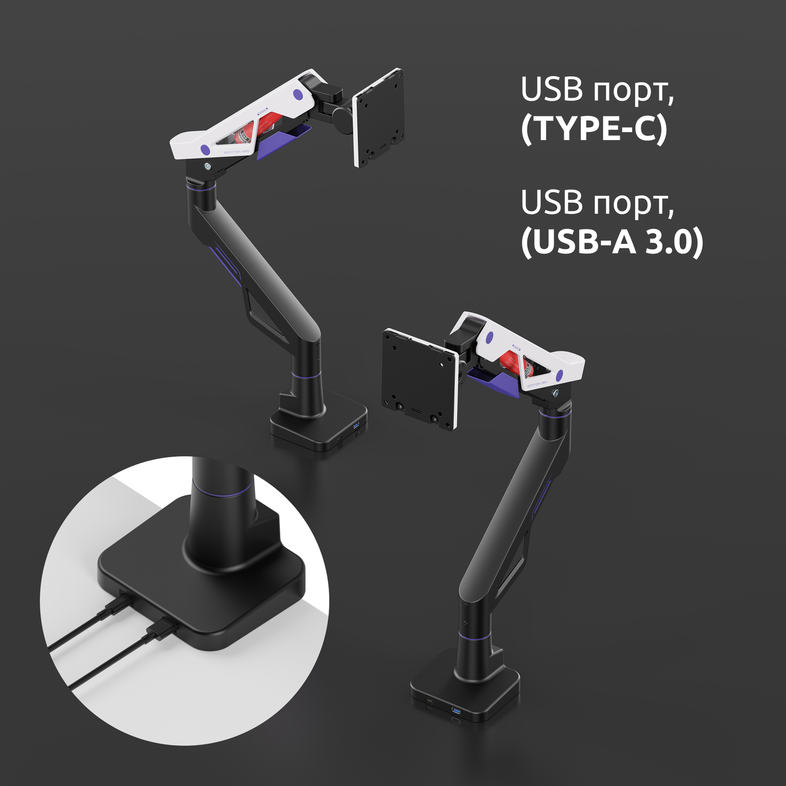 Ошеломительный внешний вид кронштейна в стиле хай-тек, максимальные характеристики и стильное, скрытое крепление с двумя USB-A & USB-C портами, на край рабочей поверхности стола – отличные доводы, чтобы приобрести этот девайс себе домой.