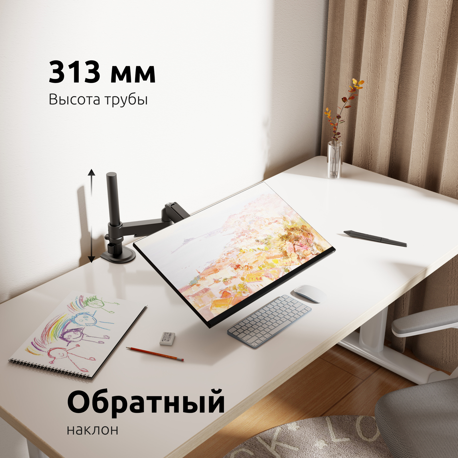 Ошеломительный внешний вид кронштейна в стиле хай-тек, максимальные характеристики и стильное, скрытое крепление, на край рабочей поверхности стола – отличные доводы, чтобы приобрести этот девайс себе домой.