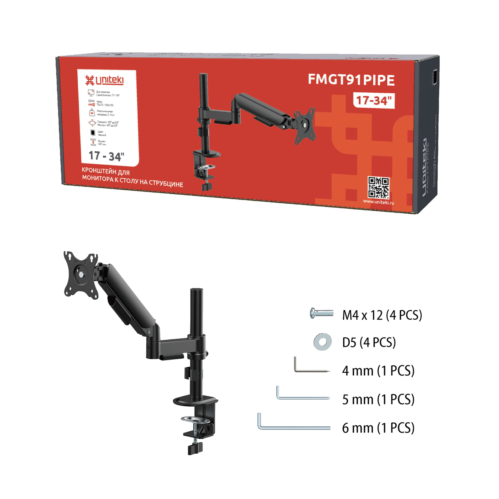 Вашему вниманию представляется новинка UNITEKI FMGT91PIPE, это новинка из нашей серии кронштейнов для мониторов с системой газлифт и креплением на трубе.