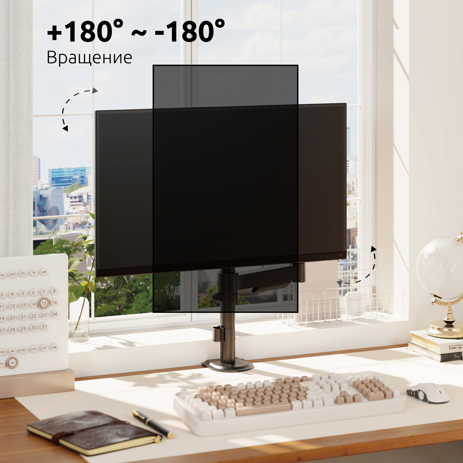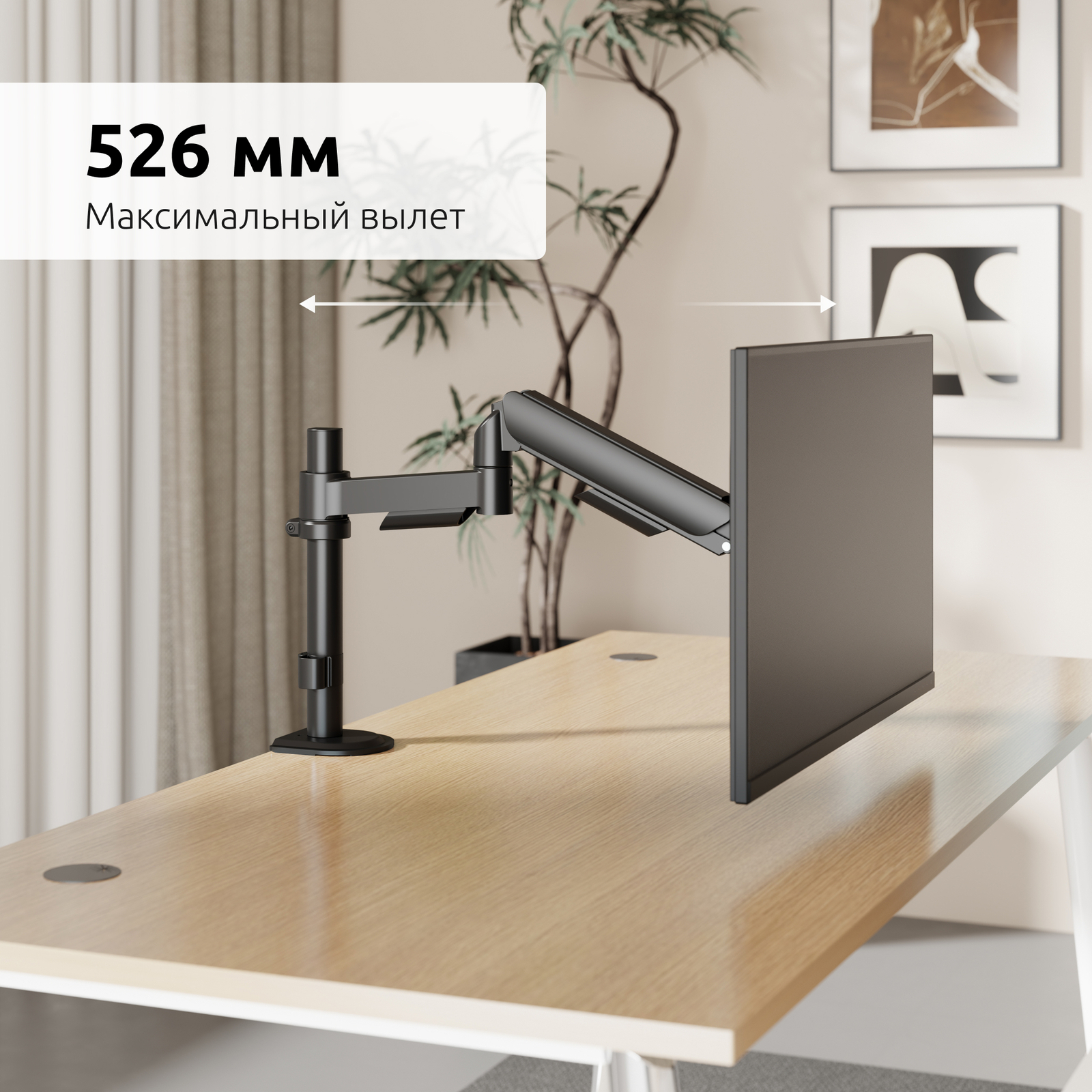 Надежный, пружинный механизм внутри корпуса кронштейна + функция перемещения в вертикальной плоскости на трубе, дает возможность легко и плавно перемещать монитор в любую нужную вам позицию, следуя за положением вашего тела во время работы за компьютером, максимально снижая нагрузку на зрение и позвоночник.