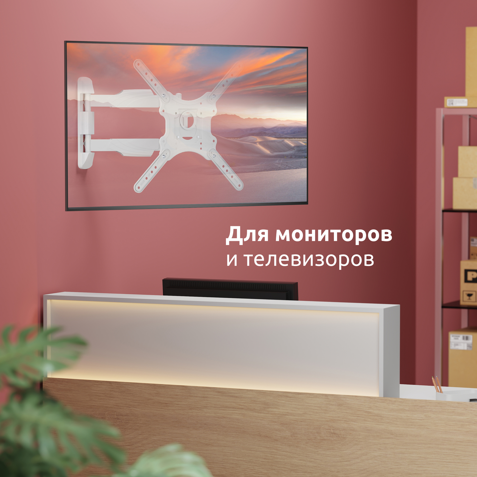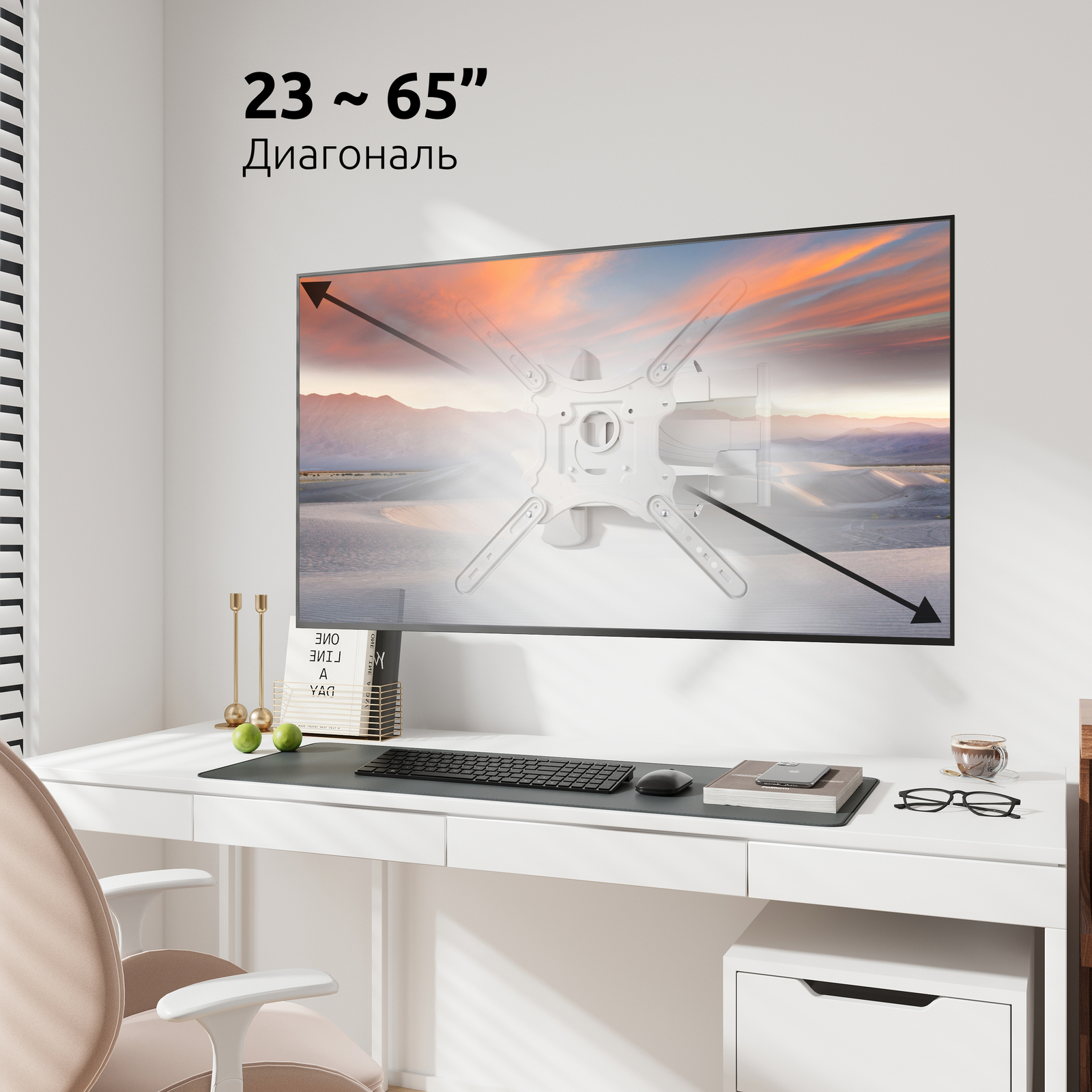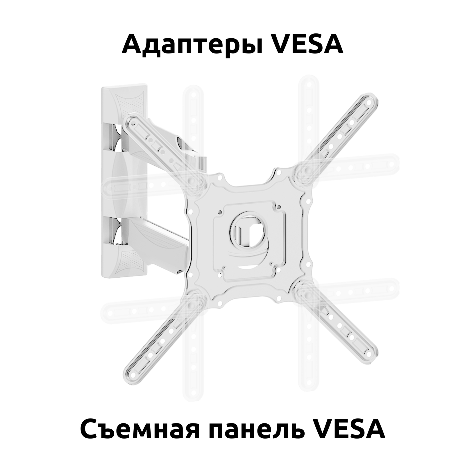 Кронштейн для телевизора или монитора с большим вылетом, поворотно-наклонный, для диагонали 23-65 дюймов, с адаптерами VESA