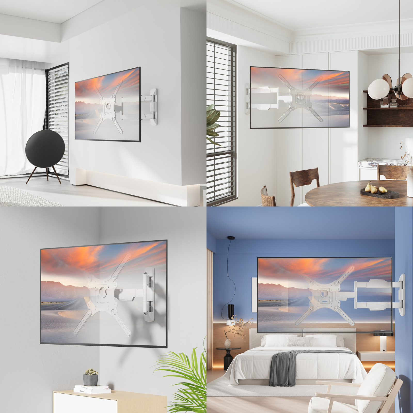 Модель UNITEKI FML40W в белом цвете является универсальной, подойдет для плоских и изогнутых экранов большинства моделей телевизоров с диагональю от 23 до 65 дюймов на современном рынке.