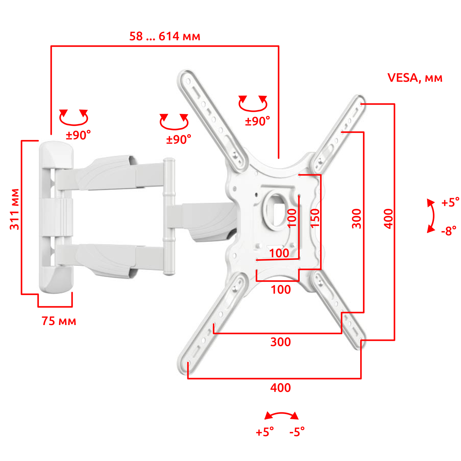 - Тип кронштейна: Настенный наклонно поворотный